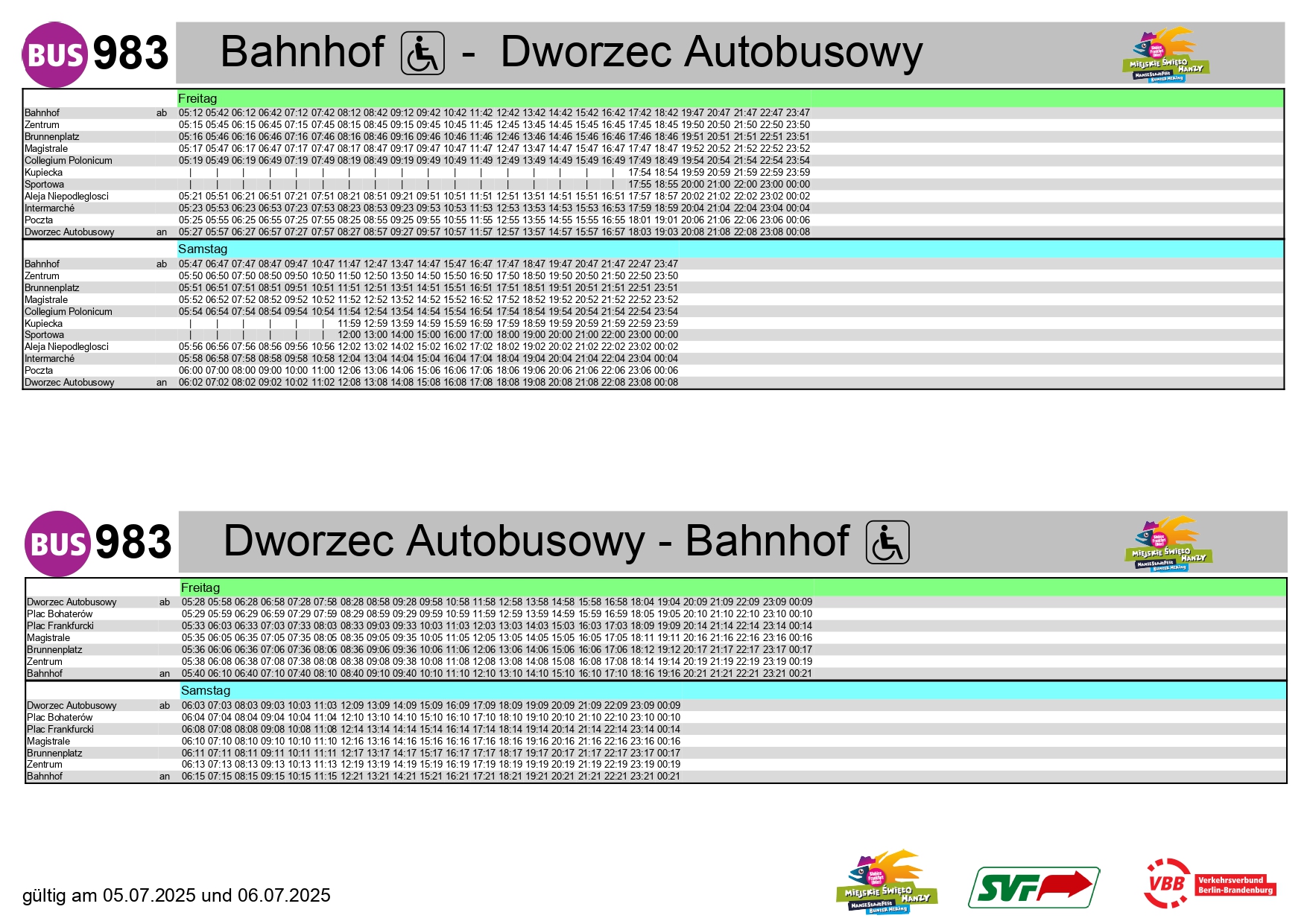 Na czas imprezy uruchomiono dodatkowe przejazdy transgranicznego autobusu linii 983. Pojazdy będą kursować między Frankfurtem nad Odrą (Brunnenplatz), centrum Słubic a dworcem autobusowym. Koszt przejazdu to 2,50 euro (bilet normalny) lub 1,70 euro (bilet ulgowy). Na tej trasie ważny jest również Deutschlandticket.