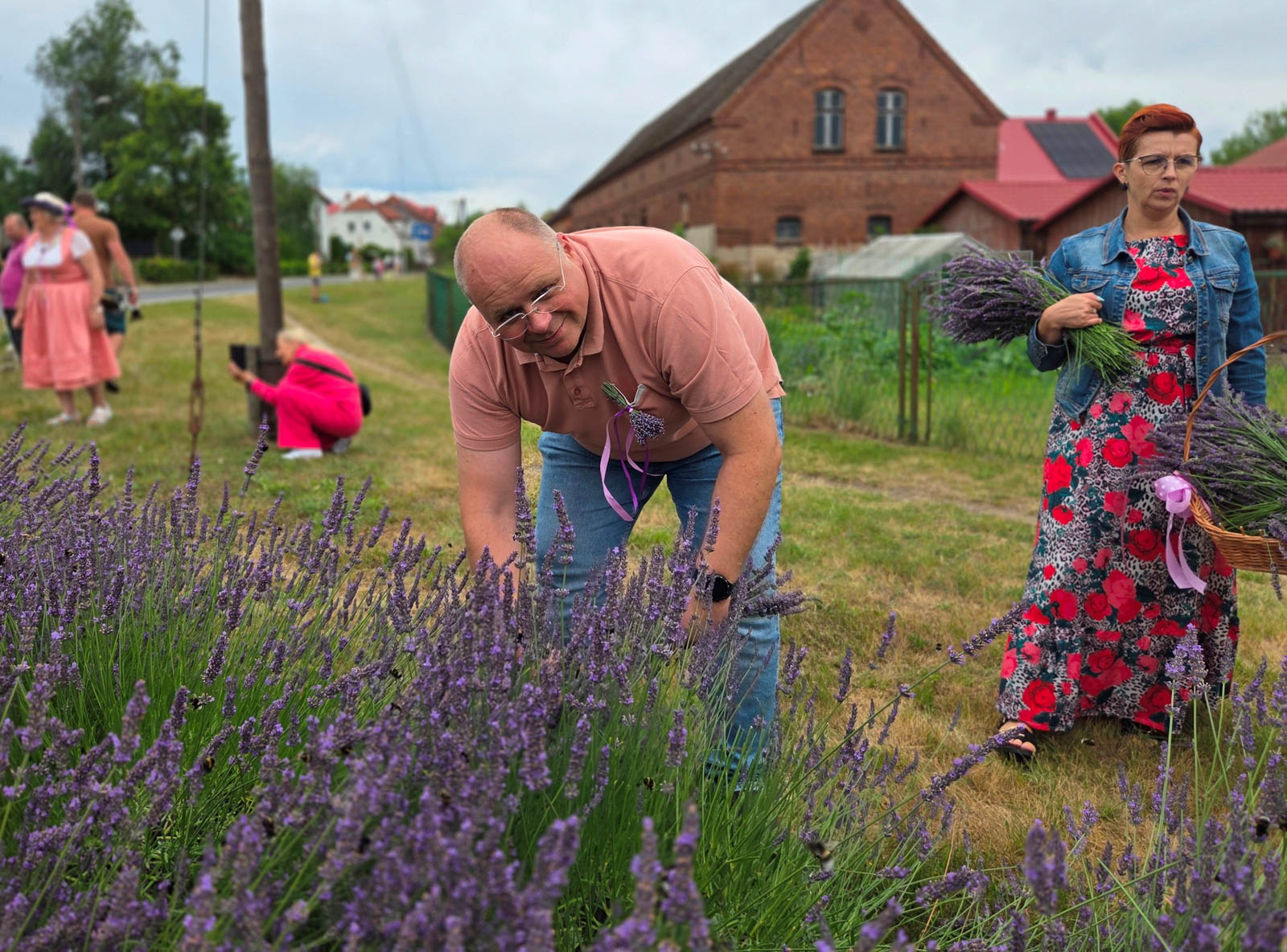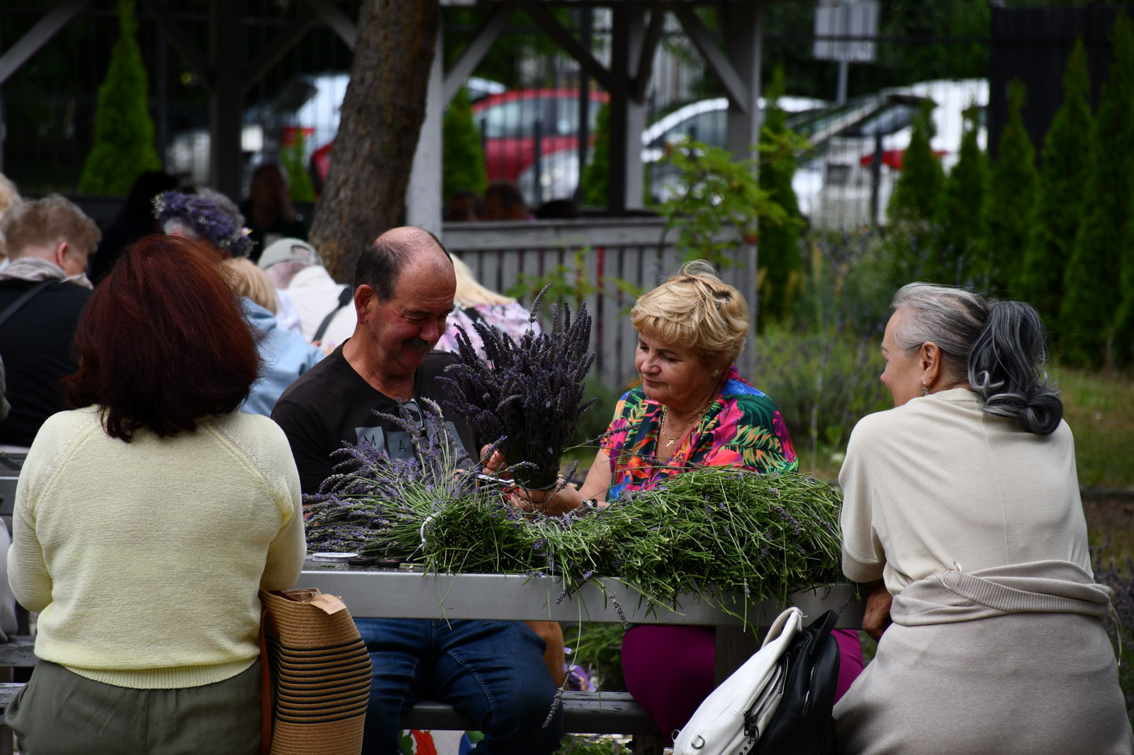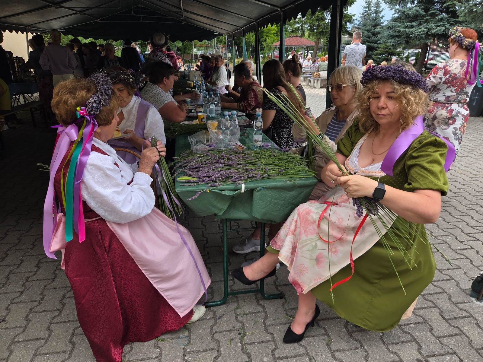 Po żniwach uczestnicy z koszami pełnymi kwiatów wrócili na plac przy MGOK, zamieniając go w pachnące miejsce pełne warsztatów, rozmów i muzyki. Uczestnicy tworzyli plecionki, degustowali potrawy z dodatkiem lawendy i korzystali z okazji do wspólnej zabawy przy występach lokalnych artystów.