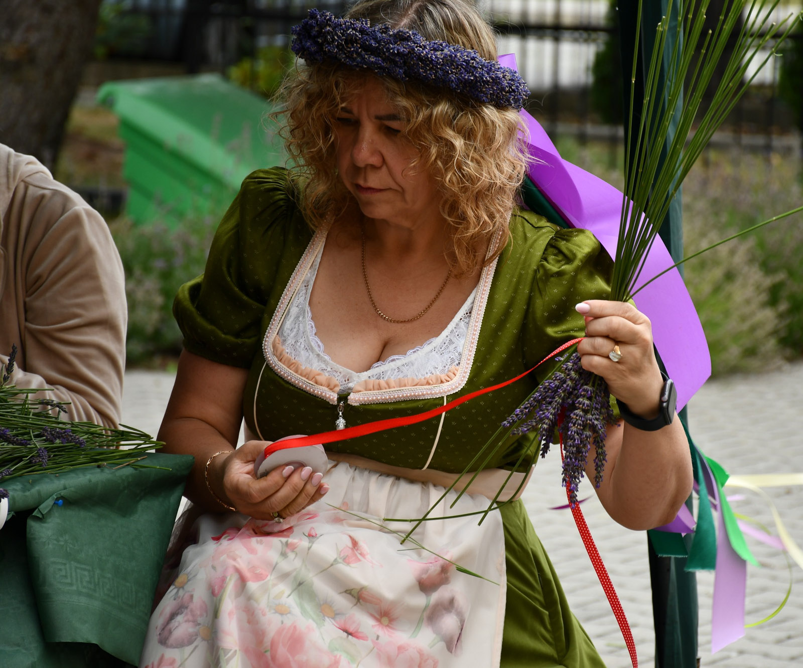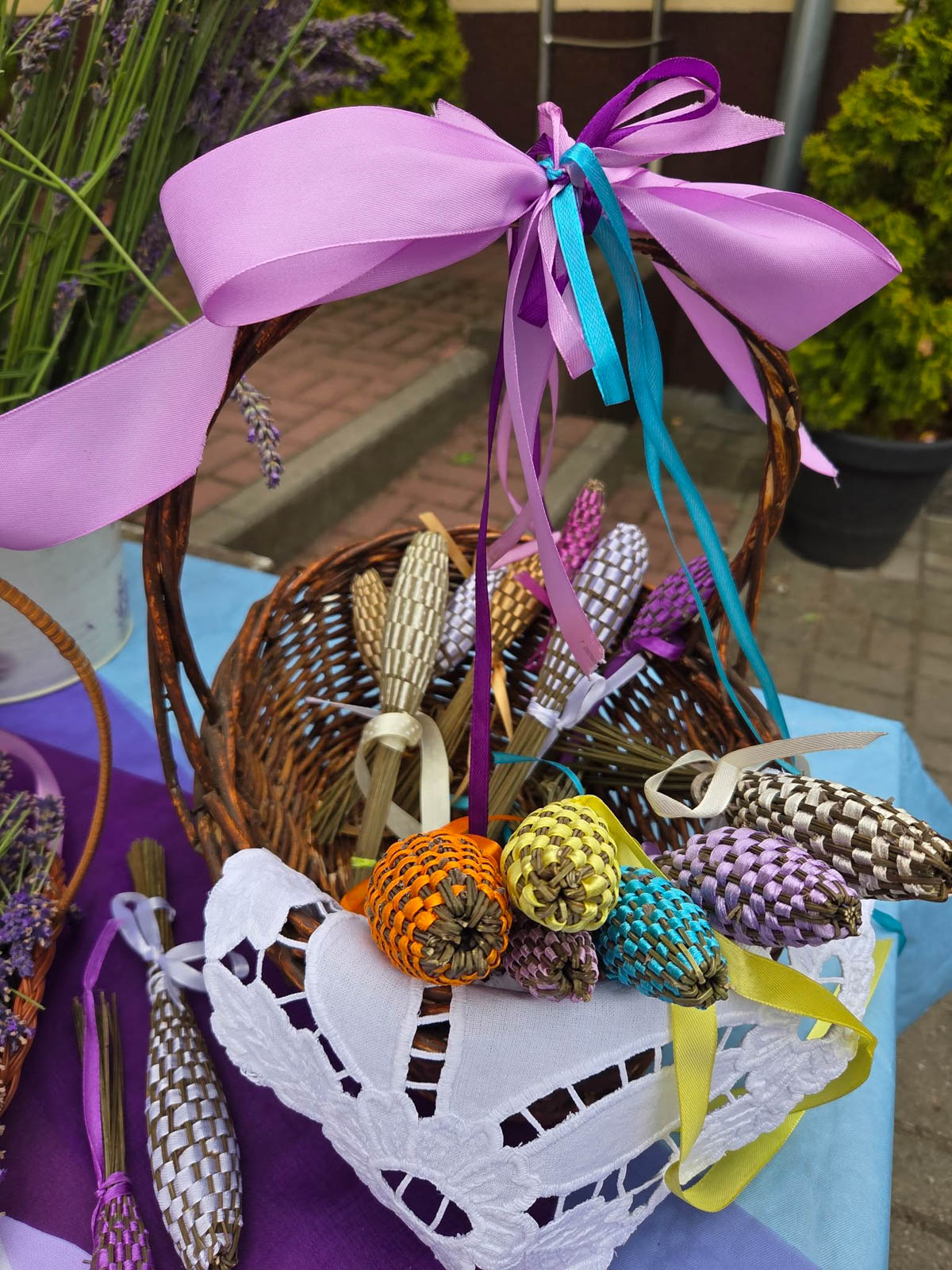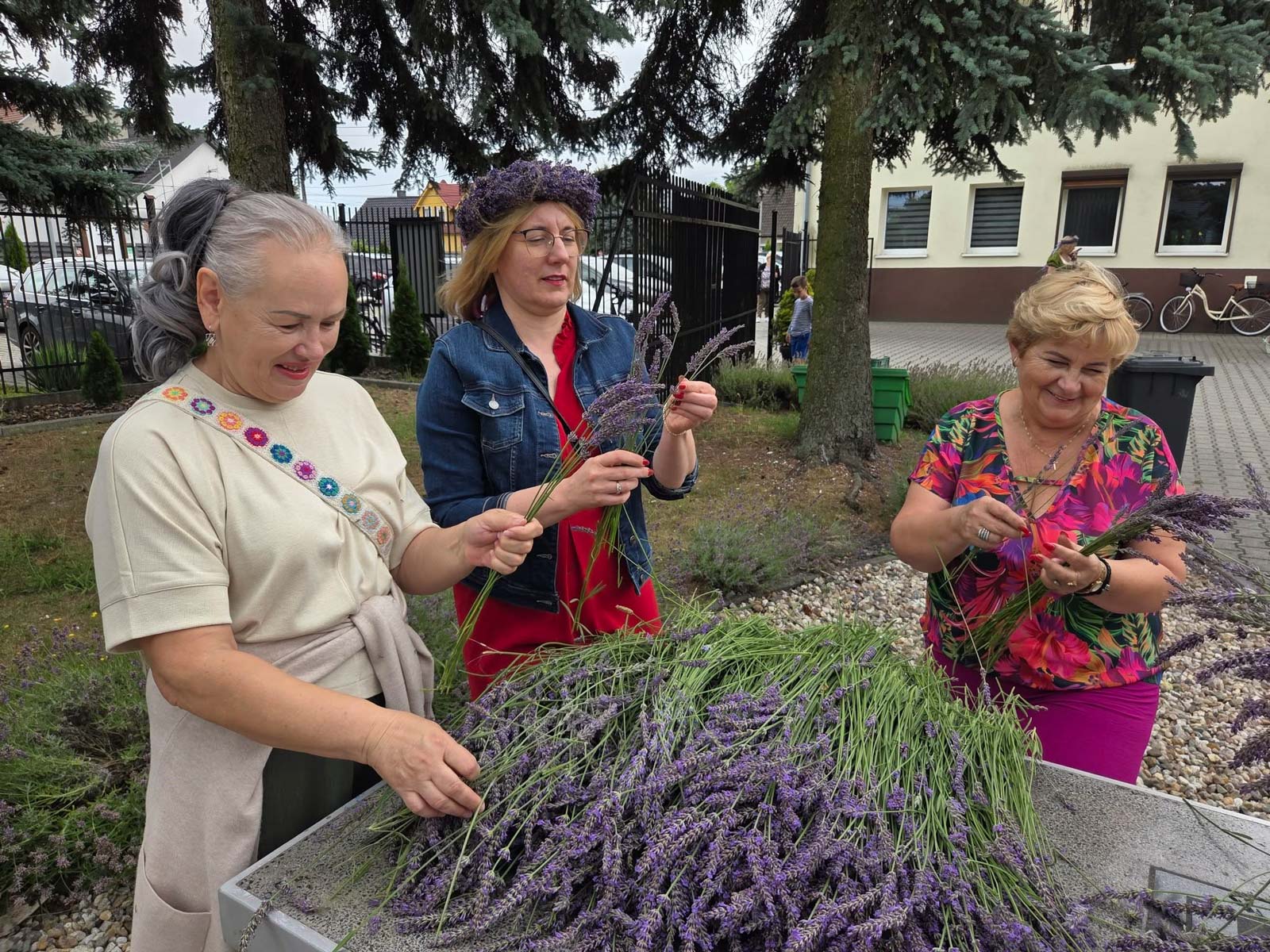 Po żniwach uczestnicy z koszami pełnymi kwiatów wrócili na plac przy MGOK, zamieniając go w pachnące miejsce pełne warsztatów, rozmów i muzyki. Uczestnicy tworzyli plecionki, degustowali potrawy z dodatkiem lawendy i korzystali z okazji do wspólnej zabawy przy występach lokalnych artystów.