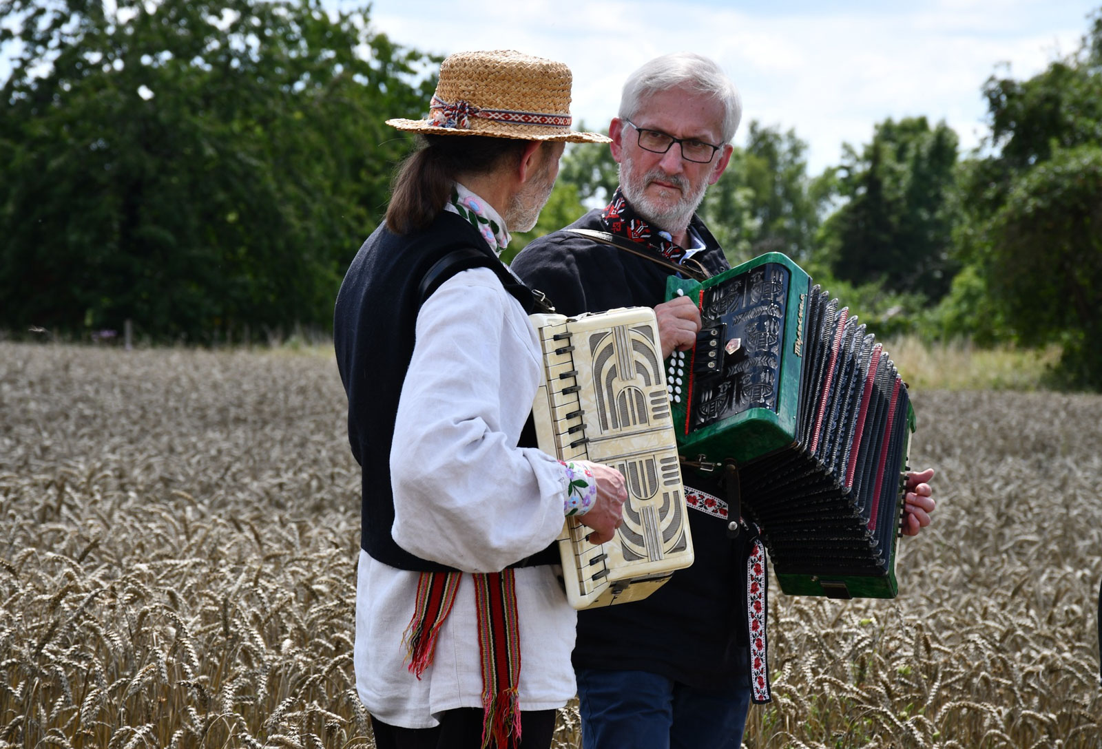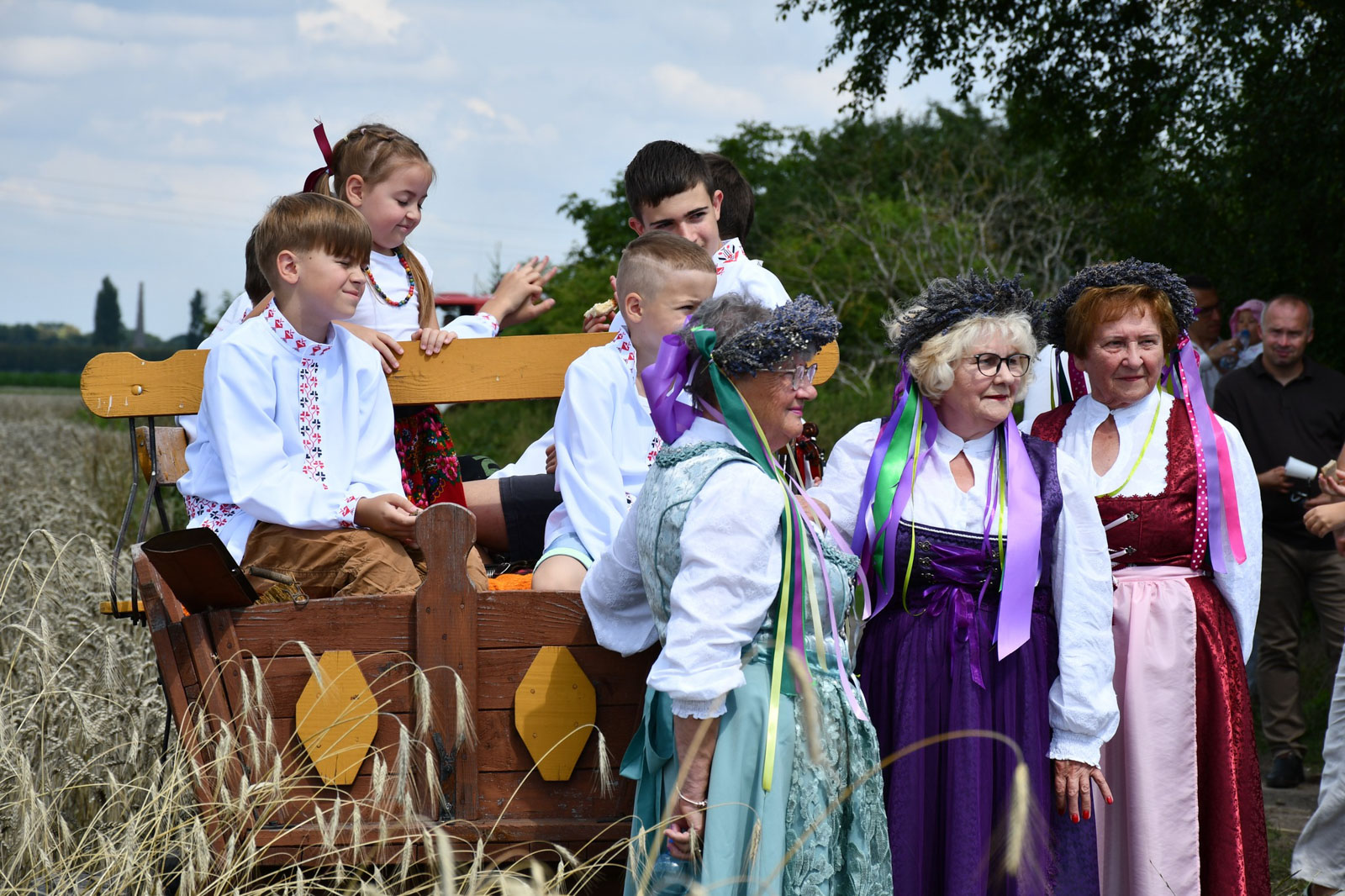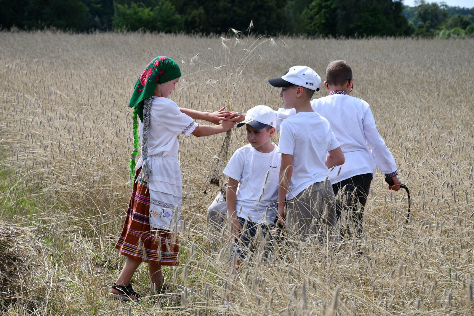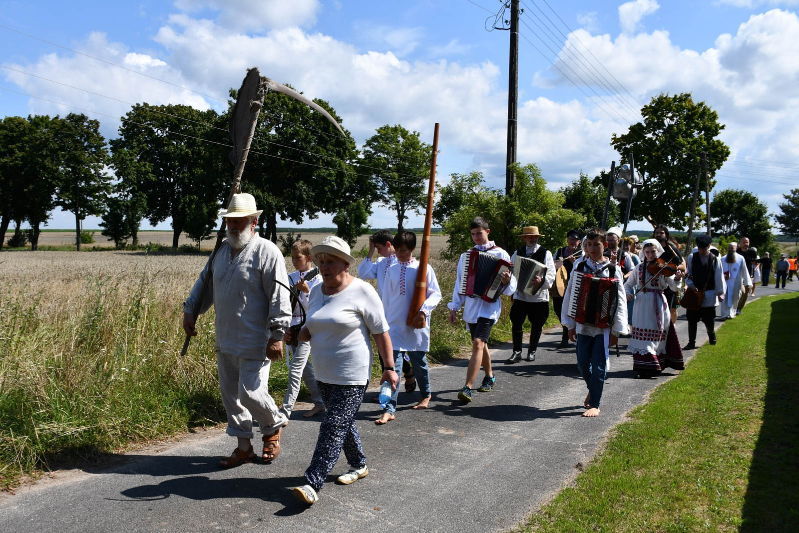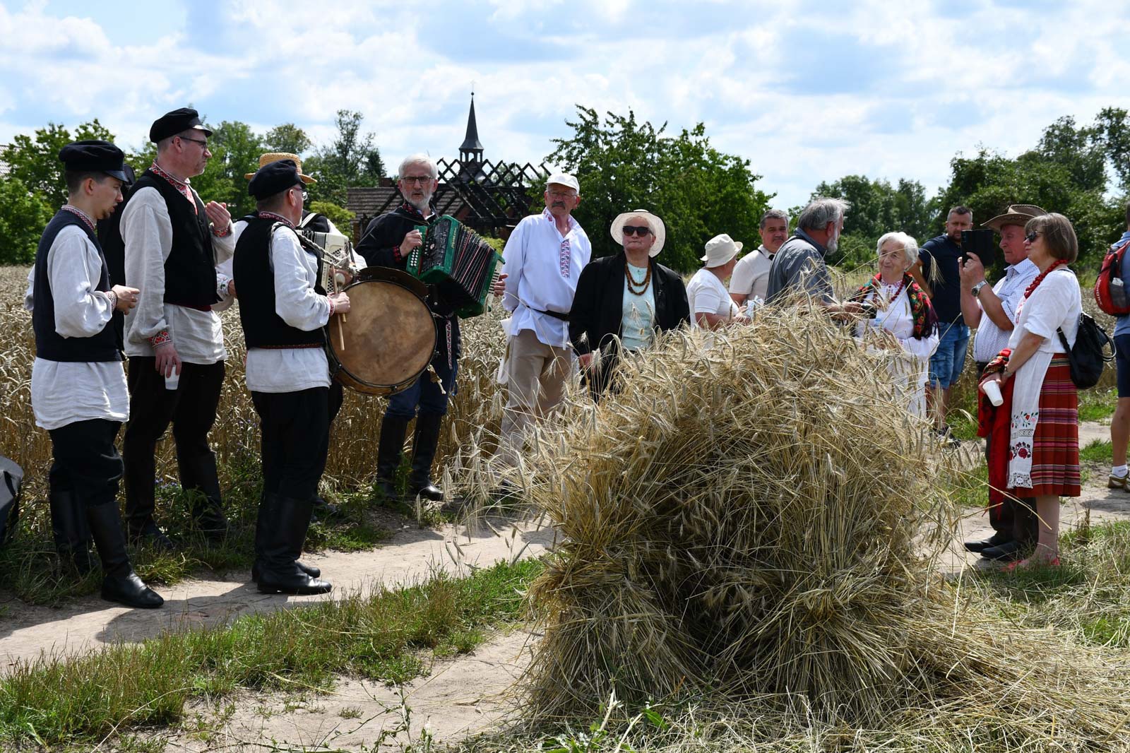 Impreza rozpoczęła się przemarszem korowodu na miejsce żniw. Tam odbyło się poświęcenie pola i żniwiarzy przez ks. Daniela Gepperta, pokaz tradycyjnych prac żniwnych oraz wspólne śpiewy i poczęstunek. O dawnych zwyczajach opowiadał Eugeniusz Niparko z Towarzystwa Miłośników Polesia i Białkowa, a prezes stowarzyszenia Wojciech Weryszko przygrywał na akordeonie, akompaniując zespołom ludowym.