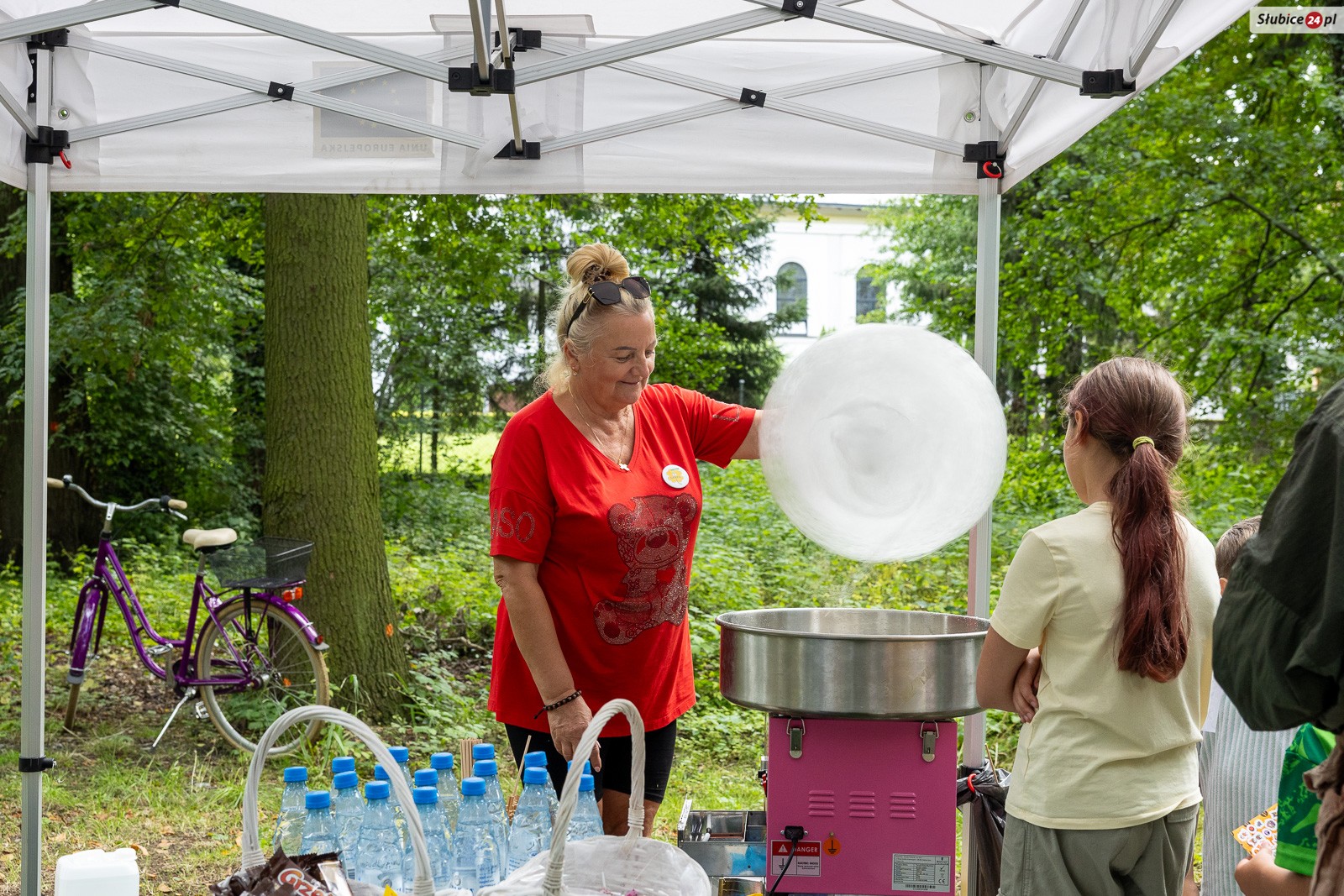 Na dzieci czekały gry i zabawy ruchowe – m.in. chodzenie na „puszkach”, rzuty do celu, przeskoki przez płotki i skakanie na drabince. Były też bańki mydlane, wata cukrowa i malowanie kredą.
