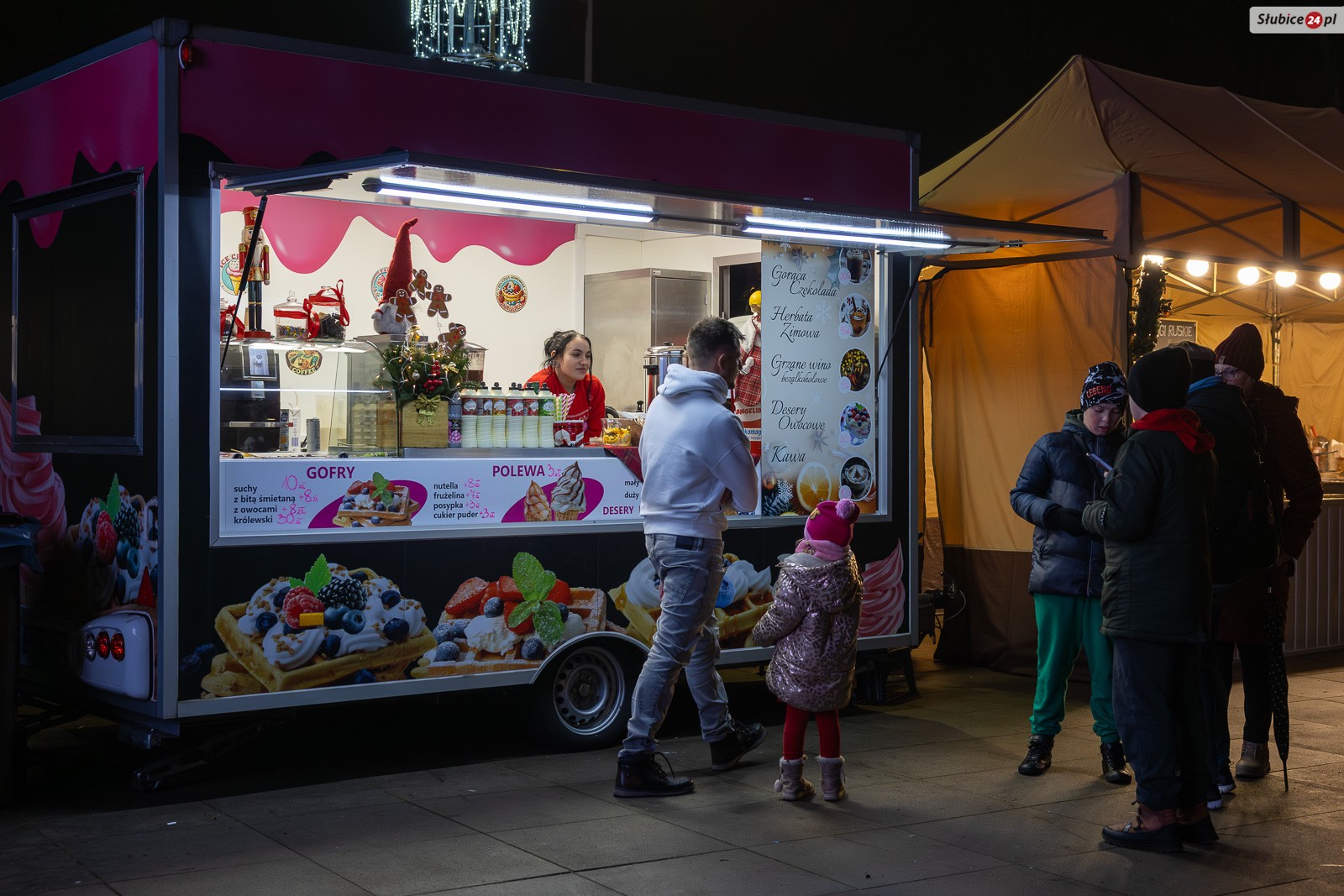 Pierwszego dnia największą atrakcją było uroczyste uruchomienie oświetlenia na choince miejskiej. Mikołaj zaprosił do wspólnego odliczania burmistrzynię Marzenę Słodownik oraz przybyłych mieszkańców, którzy potem bawili się przy muzyce i dobrym jedzeniu.