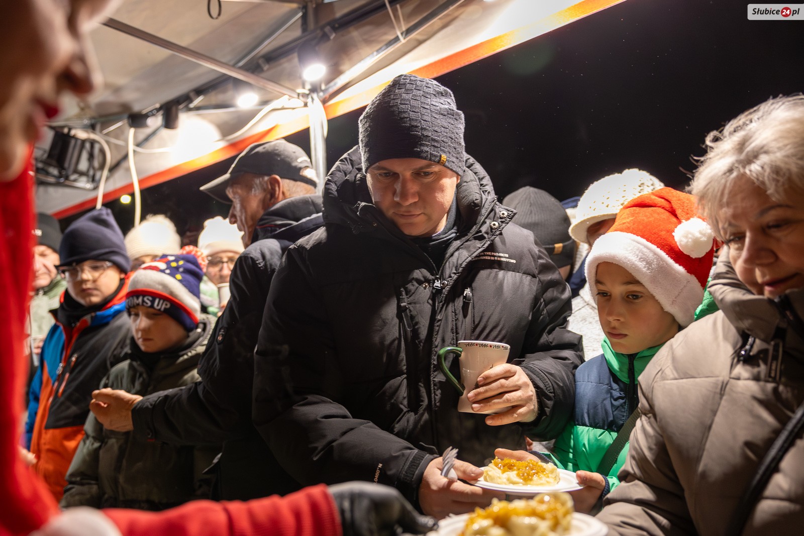 Po życzeniach burmistrzyni zaprosiła wszystkich na miejską wigilię i wspólnie z radnymi rozdawała mieszkańcom świąteczne przysmaki, wśród których królowały oczywiście pierogi z barszczem.