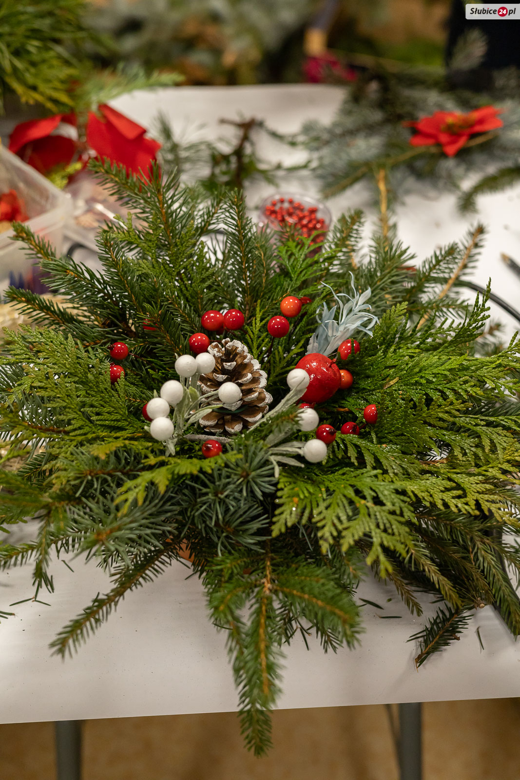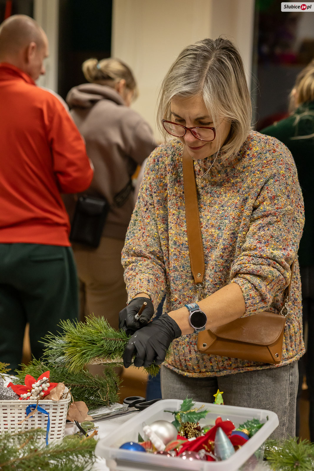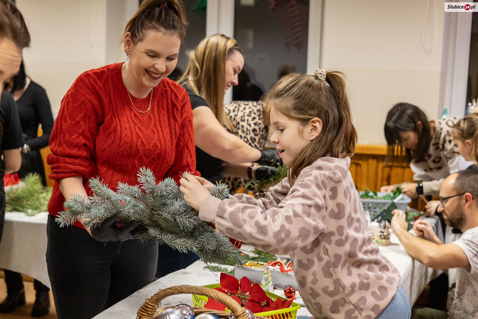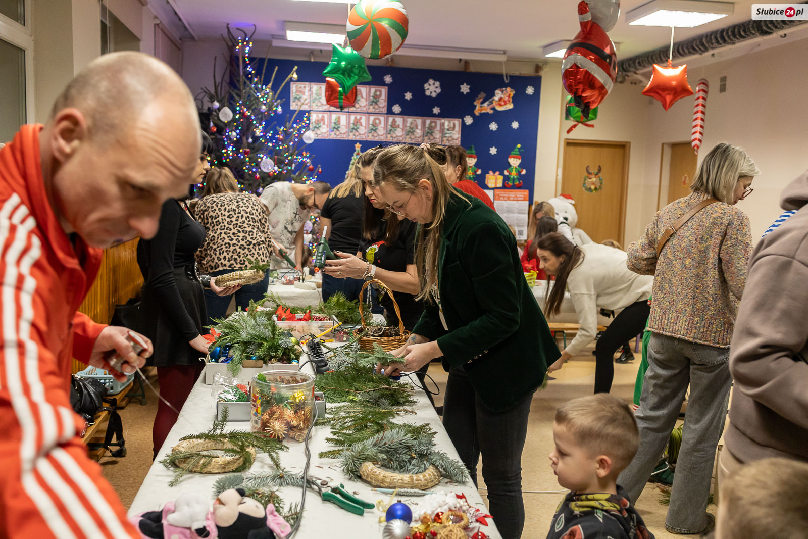 Wszystkich uczestników na „Uszatkowym Stroikowaniu” powitała dyrektor placówki Kamila Łopusiewicz. Dla najmłodszych przygotowano choinki i ozdoby do ozdabiania, malowania i wyklejania, natomiast dorośli mogli skorzystać z różnorodnych materiałów florystycznych – m.in. słomianych wianków, pianek florystycznych, gałązek iglaków oraz bogatej gamy ozdób: bombek, koralików, szyszek, listków czy śnieżynek. Z pomocą dostępnych narzędzi każdy mógł stworzyć własną, unikalną dekorację, którą następnie zabierał ze sobą do domu.