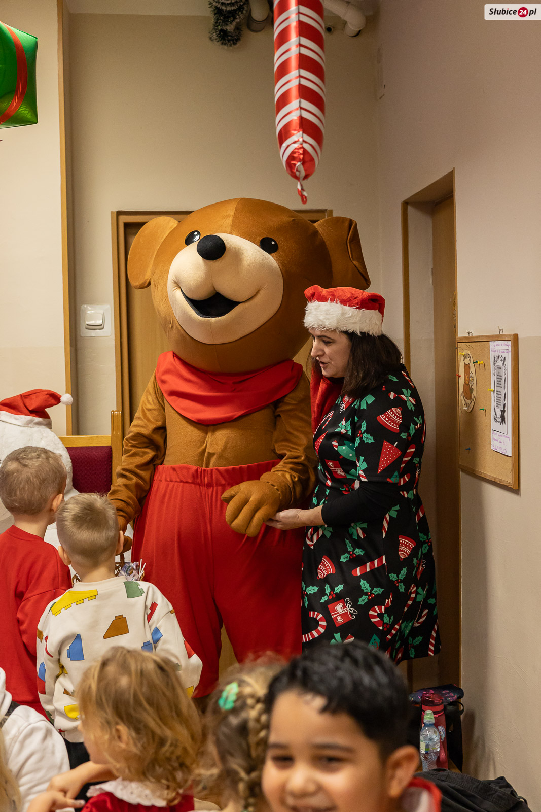 Nie zabrakło świątecznych ozdób, prawdziwej choinki, poczęstunku oraz grających w tle kolęd i świątecznych piosenek. Pojawił się też nieoczekiwany gość – dzieci odwiedził sam Miś Uszatek, który rozdawał lizaki, pozował do pamiątkowych zdjęć i przyjmował serdeczne przytulasy.