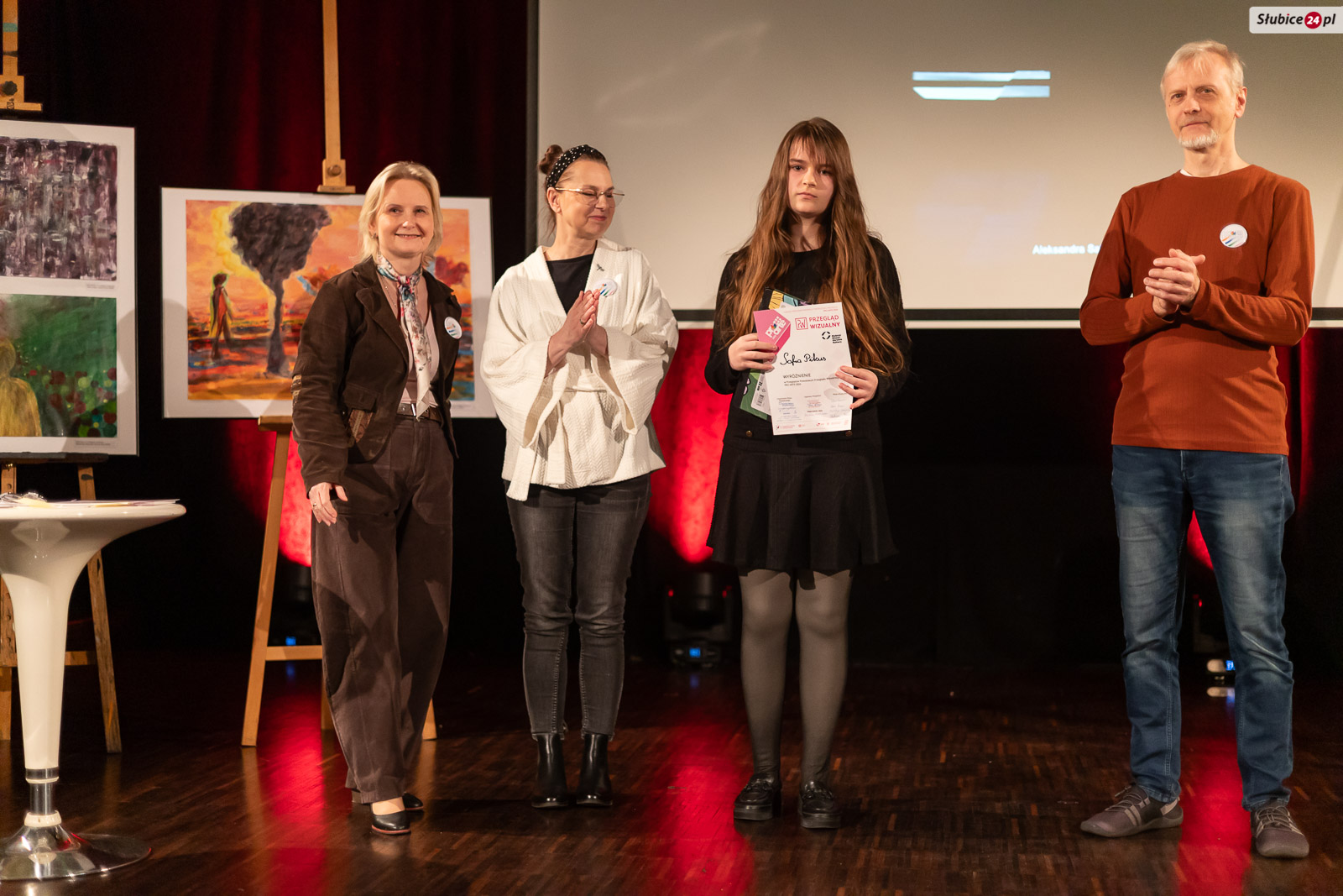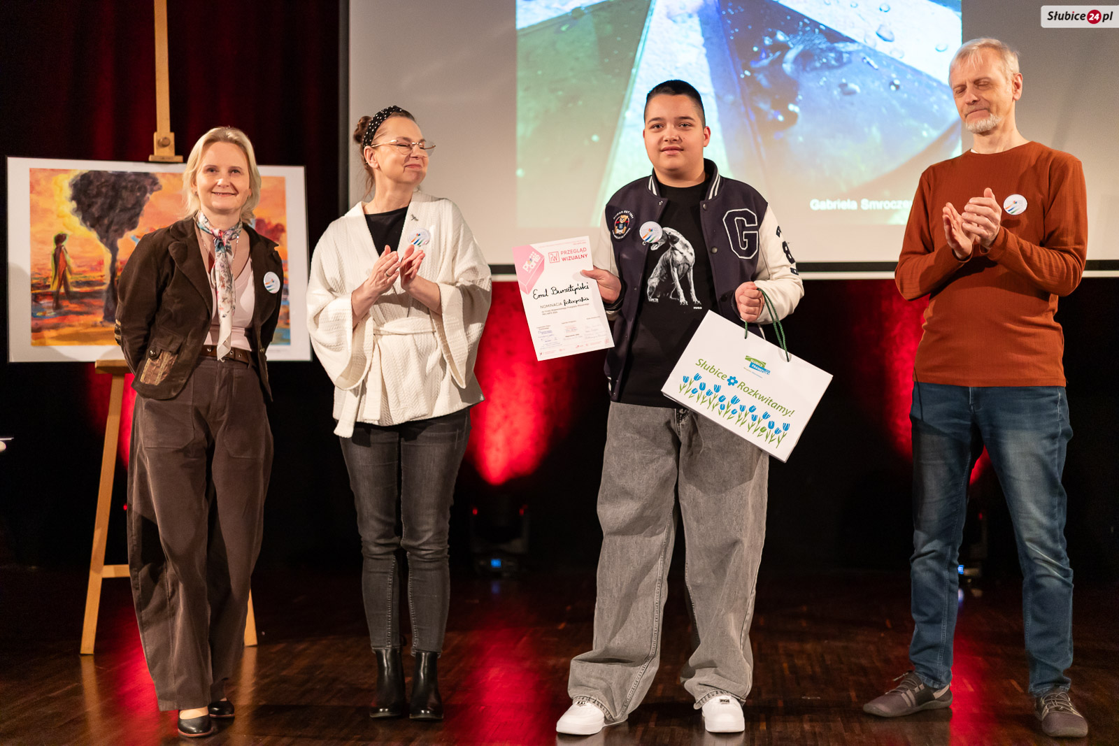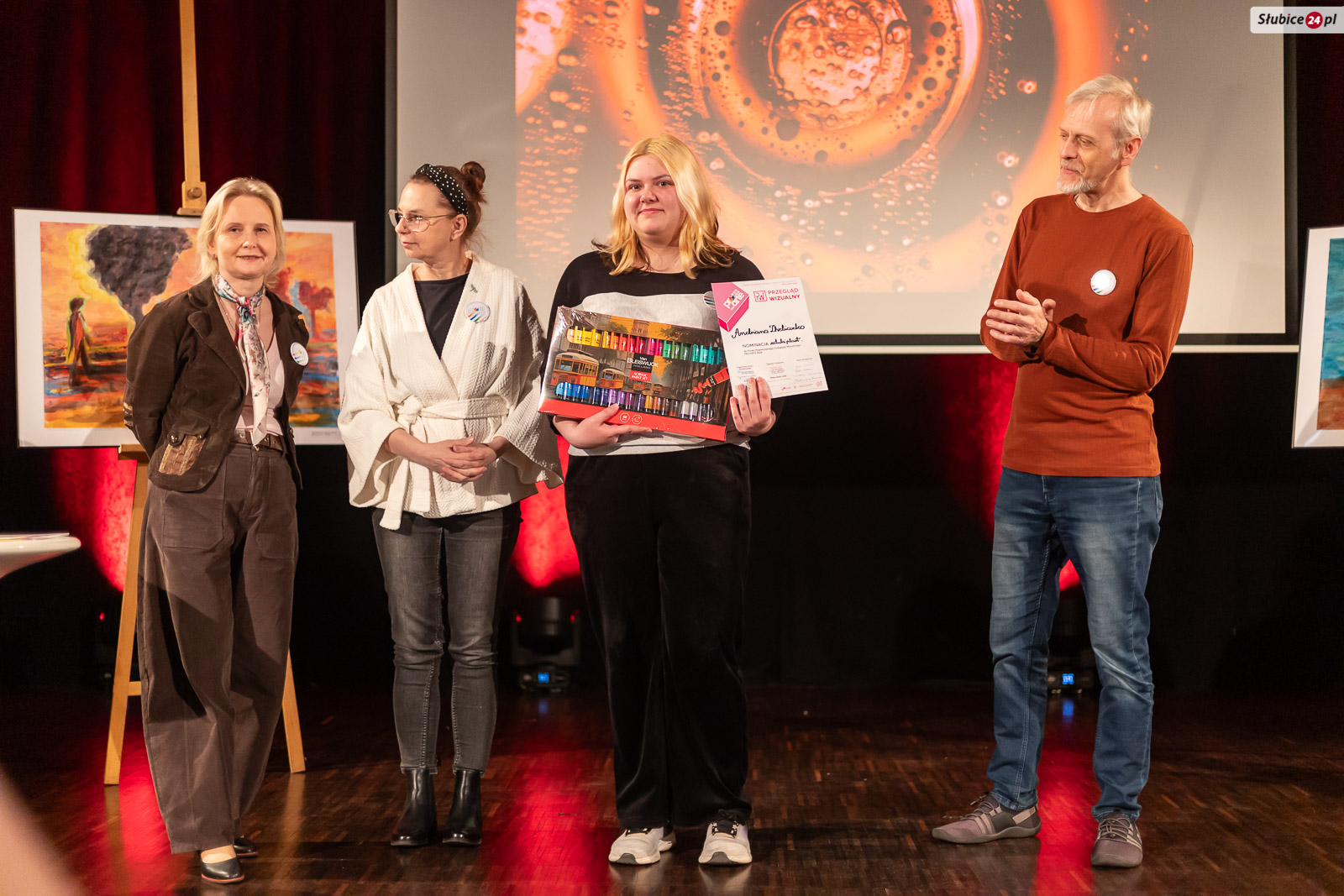 Anna Łysiak, odpowiedzialna za część plastyczną, podkreślała wysoki poziom prac. – Nie ukrywam, że wybór był naprawdę trudny, bo zaprezentowano nam wspaniałe prace, z których możecie być dumni. Powiem tyle: działajcie, twórzcie, nie bójcie się i korzystajcie z tego, co oferuje wam świat – apelowała.