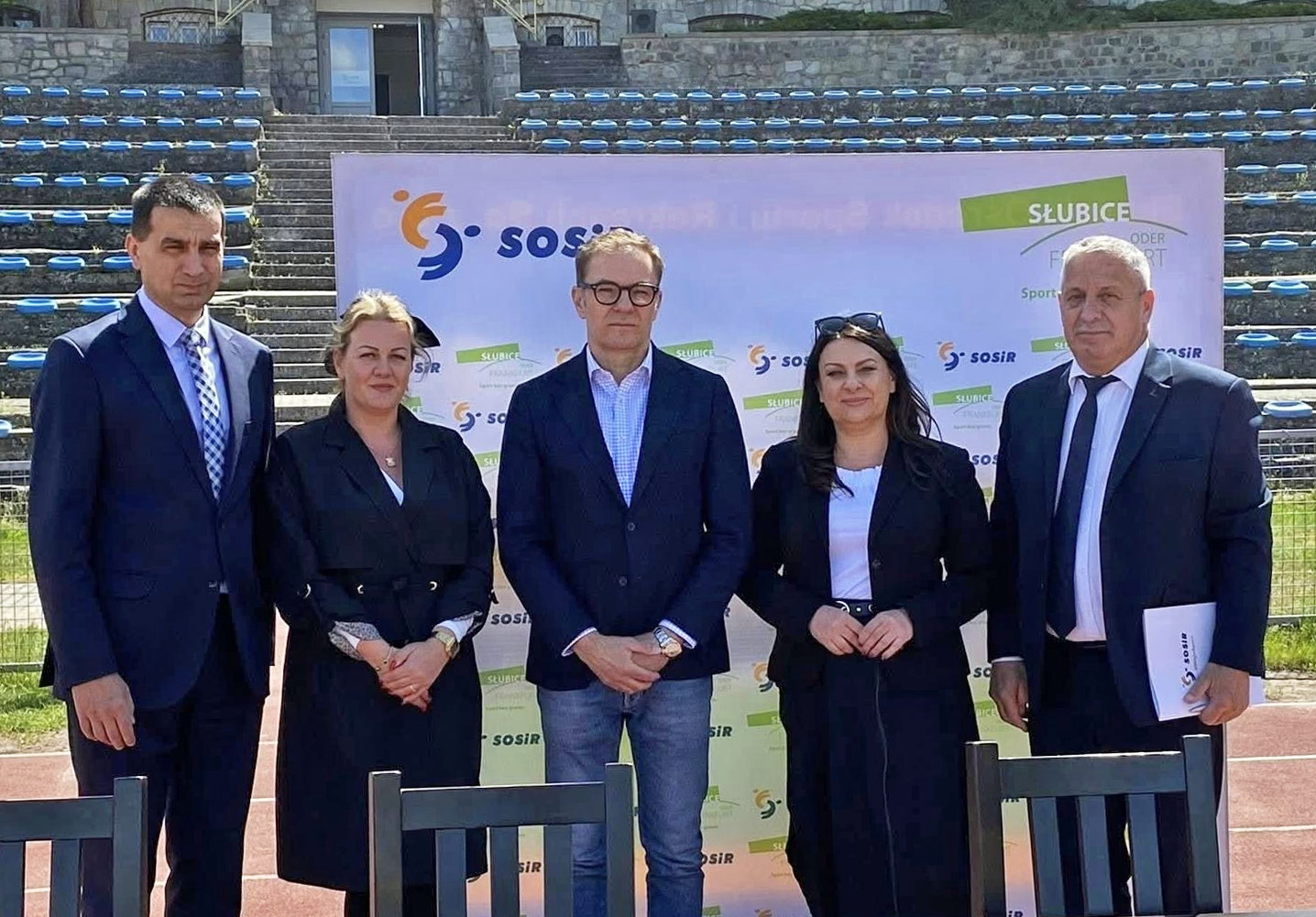 8 maja na murawie stadionu odbyło się uroczyste podpisanie umowy na realizację inwesttycji. W wydarzeniu wzięli udział m.in. prezes SOSiR Ryszard Chustecki, burmistrzyni Słubic Marzena Słodownik oraz skarbnik gminy Rafał Dydak.