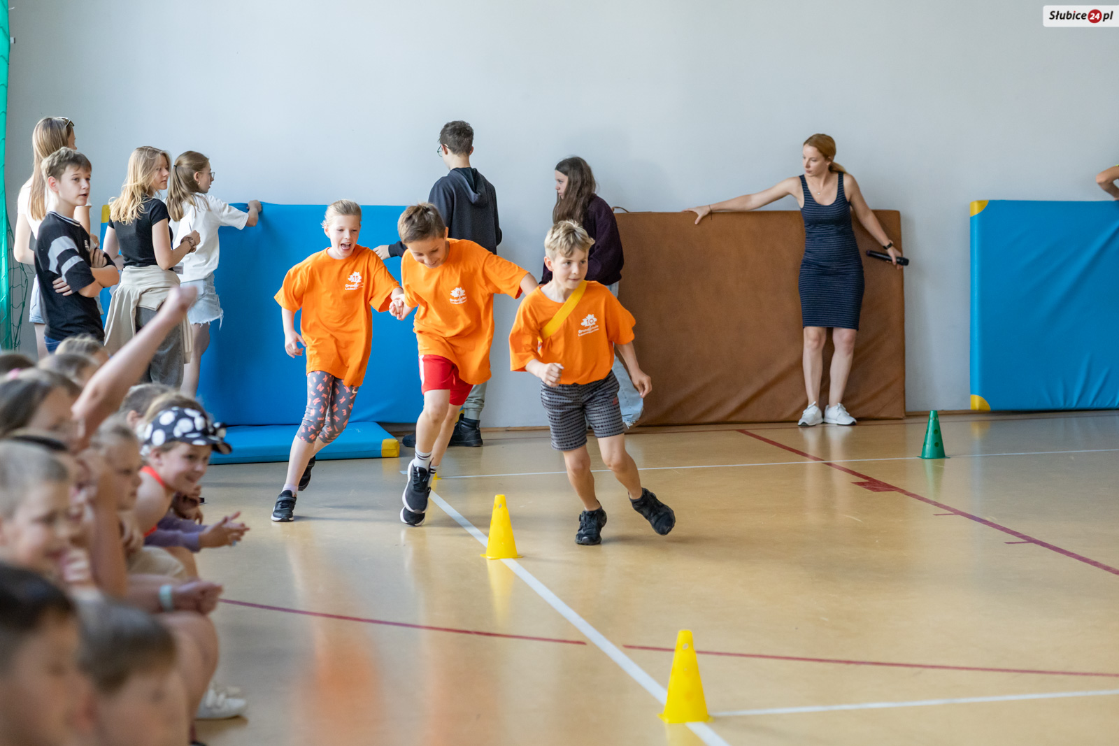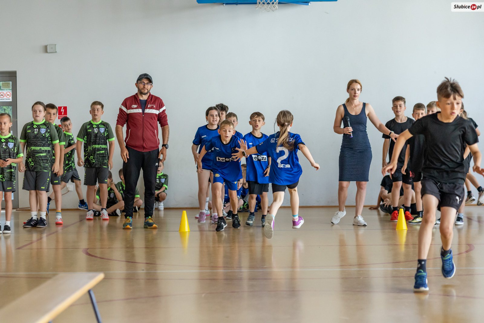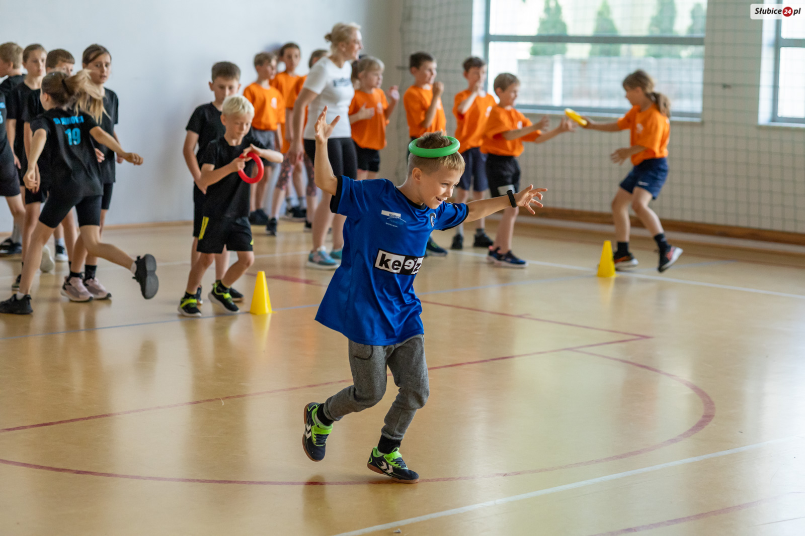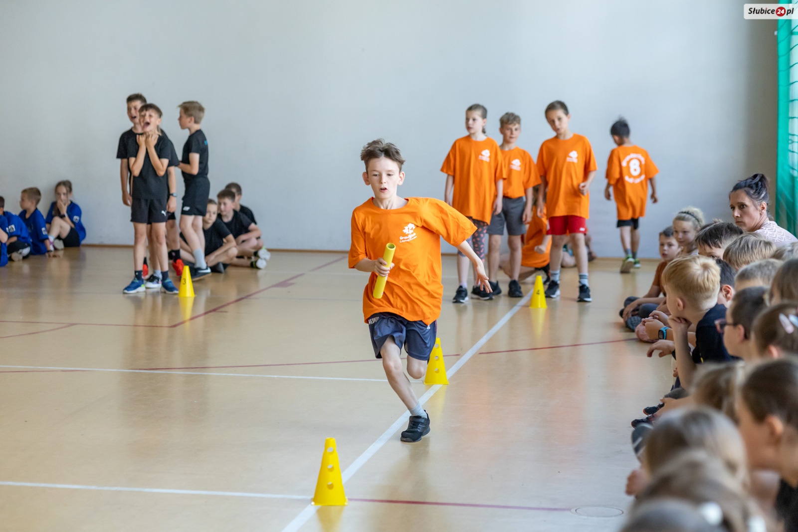 Uczniowie mierzyli się w dziewięciu konkurencjach. Zaplanowano dla nich kozłowanie piłki do koszykówki, slalom z kijem hokejowym, skakanie na skakance połączone z układaniem obrazka, przeskakiwanie przez ławeczkę, „wyścig aniołów” z kółkiem na głowie, toczenie hula hop, bieg wężem slalomem, matematyczny bieg z zadaniami oraz skakanie w workach. Emocji nie brakowało – tempo było tak wysokie, że niektórym uczestnikom… spadały buty.