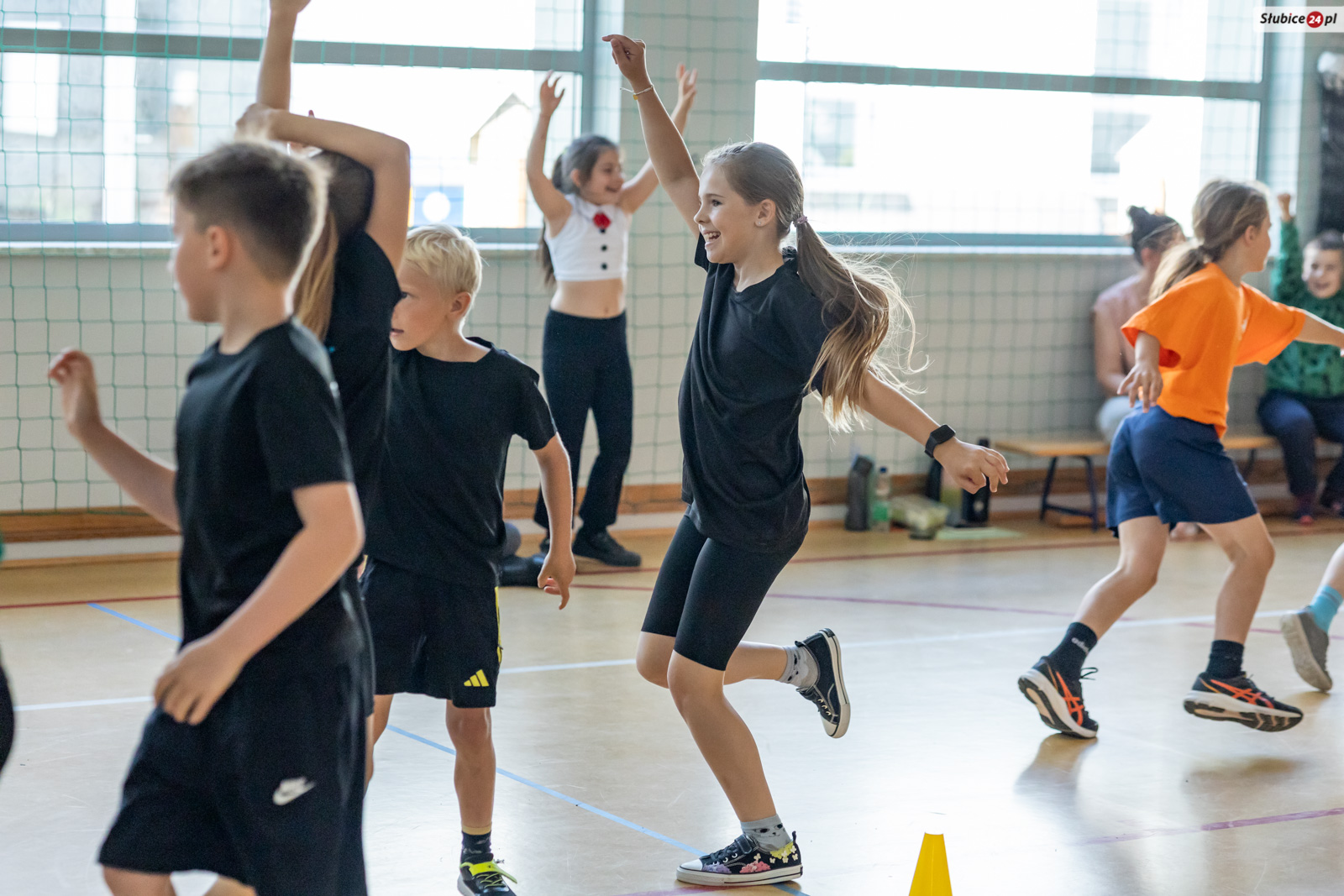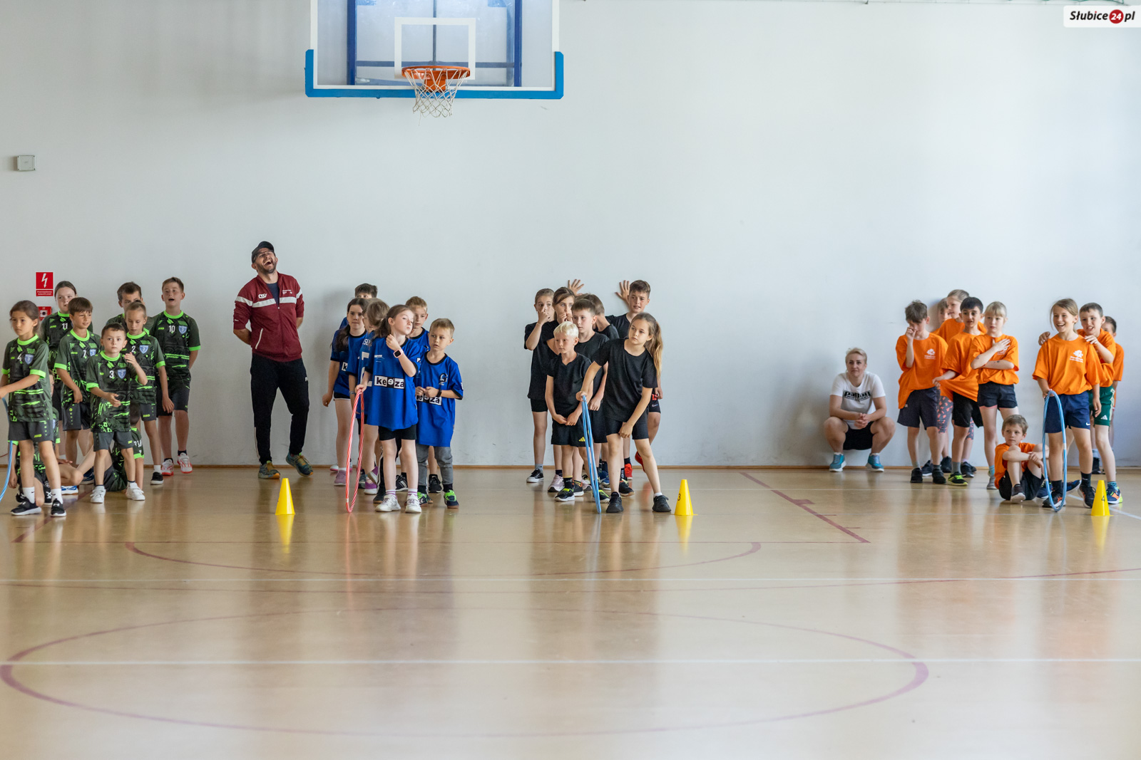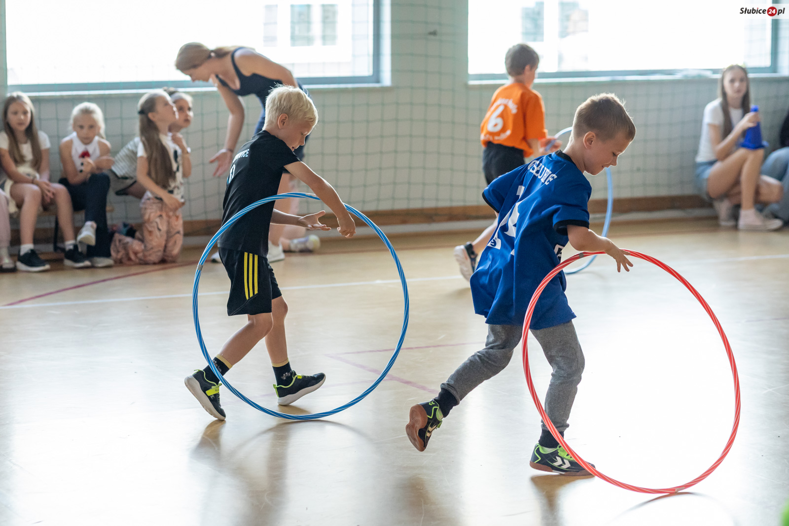 Uczniowie mierzyli się w dziewięciu konkurencjach. Zaplanowano dla nich kozłowanie piłki do koszykówki, slalom z kijem hokejowym, skakanie na skakance połączone z układaniem obrazka, przeskakiwanie przez ławeczkę, „wyścig aniołów” z kółkiem na głowie, toczenie hula hop, bieg wężem slalomem, matematyczny bieg z zadaniami oraz skakanie w workach. Emocji nie brakowało – tempo było tak wysokie, że niektórym uczestnikom… spadały buty.