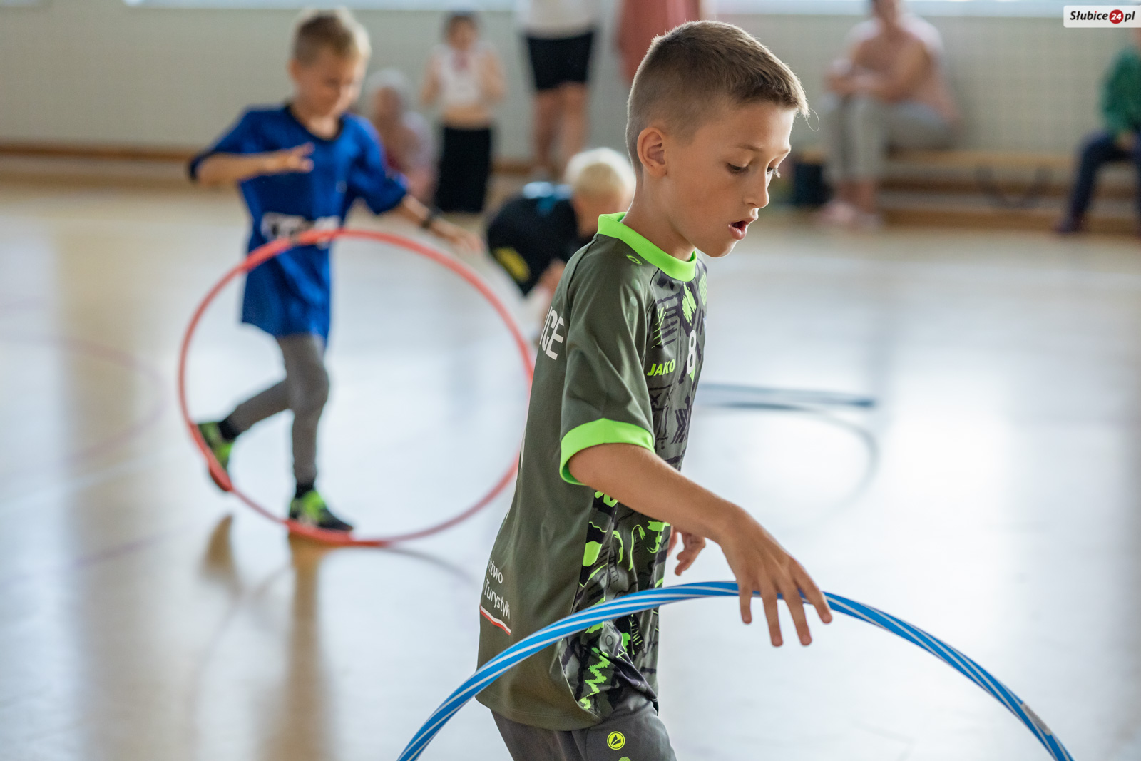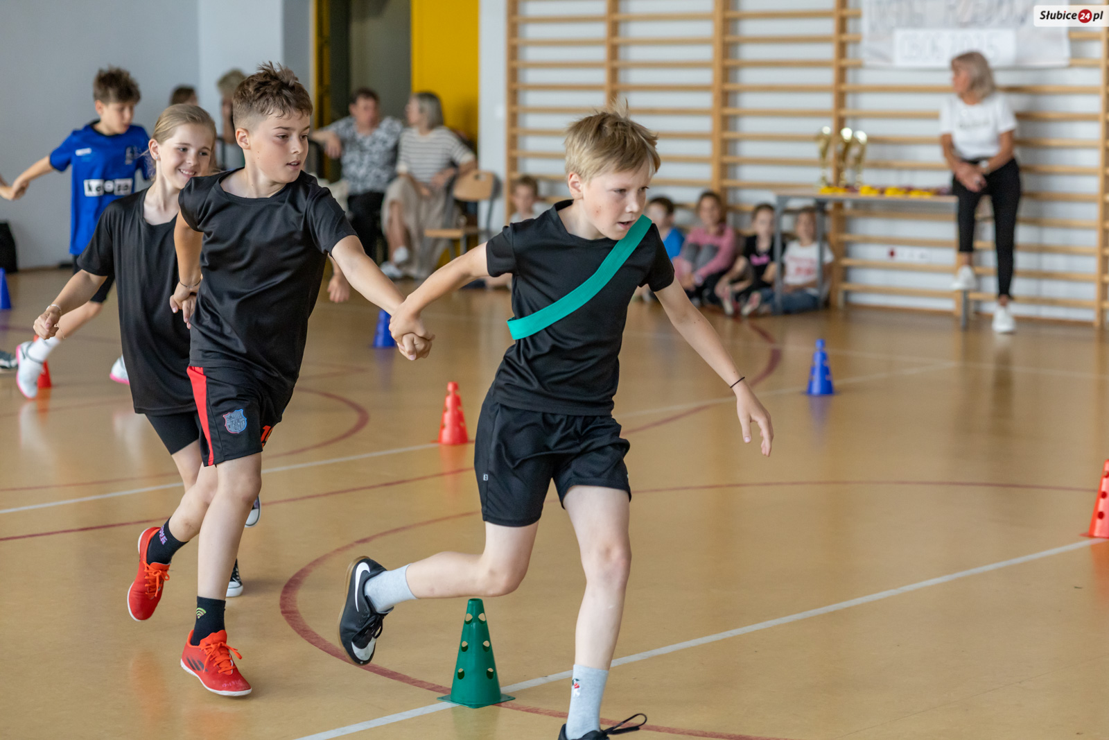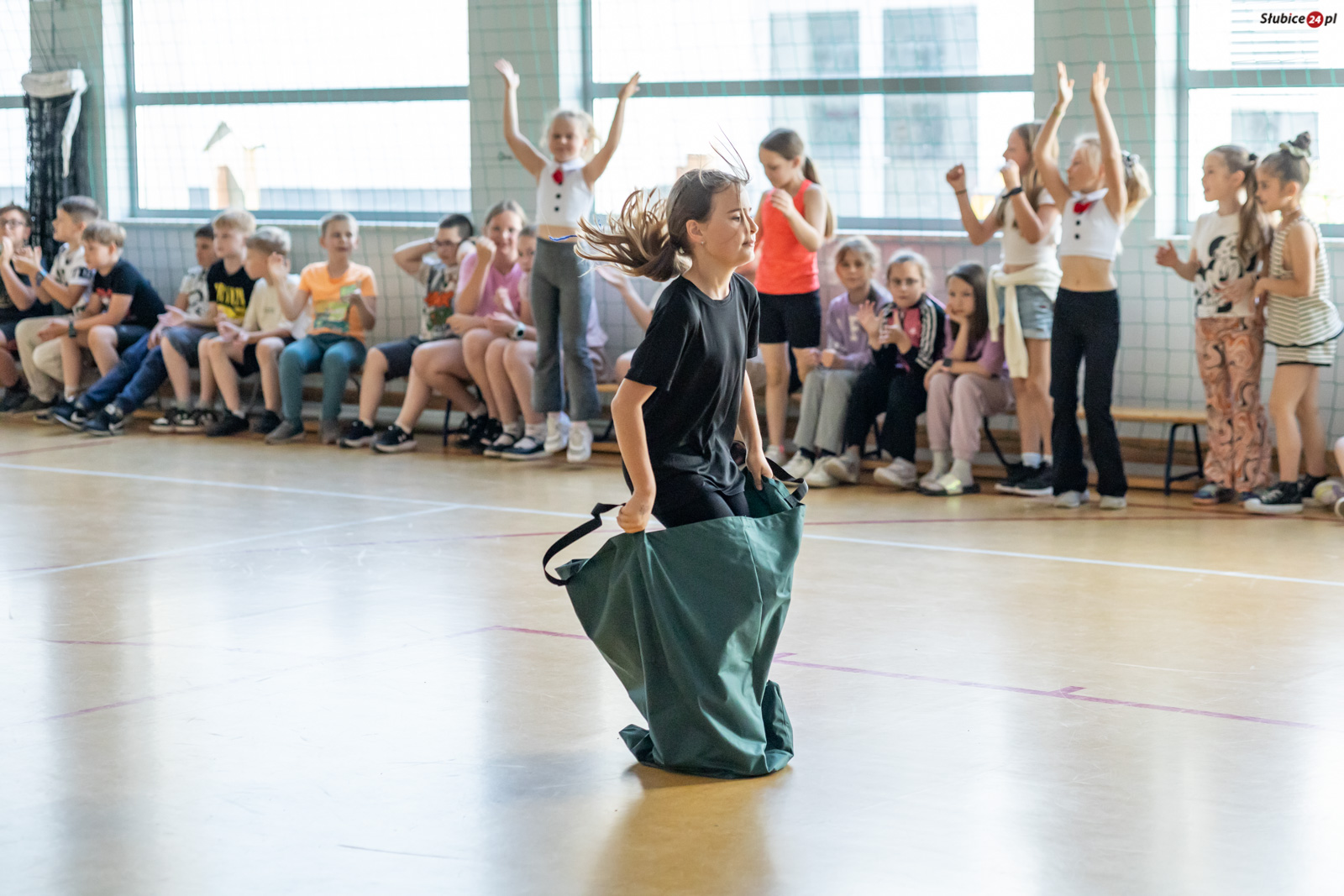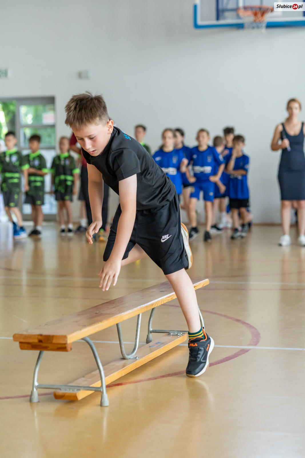 Uczniowie mierzyli się w dziewięciu konkurencjach. Zaplanowano dla nich kozłowanie piłki do koszykówki, slalom z kijem hokejowym, skakanie na skakance połączone z układaniem obrazka, przeskakiwanie przez ławeczkę, „wyścig aniołów” z kółkiem na głowie, toczenie hula hop, bieg wężem slalomem, matematyczny bieg z zadaniami oraz skakanie w workach. Emocji nie brakowało – tempo było tak wysokie, że niektórym uczestnikom… spadały buty.