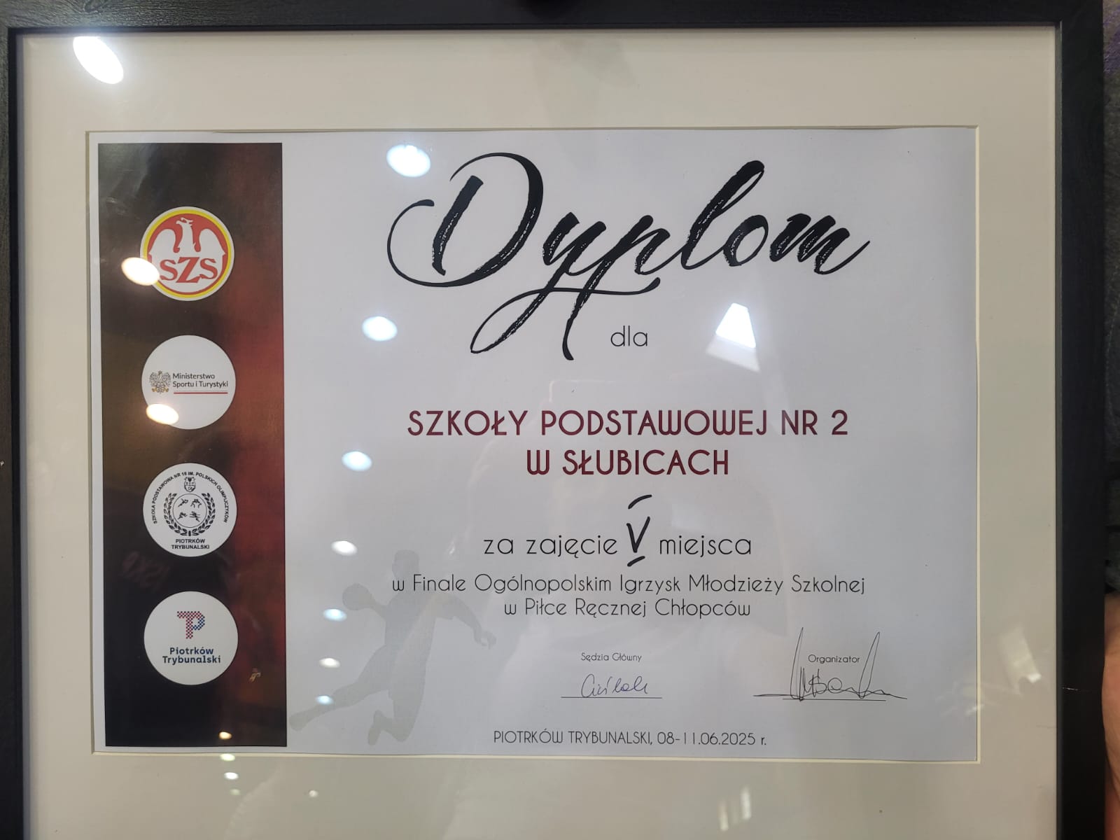 Reprezentacja Szkoły Podstawowej nr 2 w Słubicach znalazła się wśród najlepszych drużyn w kraju. W ogólnopolskim finale Igrzysk Młodzieży Szkolnej w piłce ręcznej chłopców zajęła piąte miejsce, rywalizując z zespołami z całej Polski.
