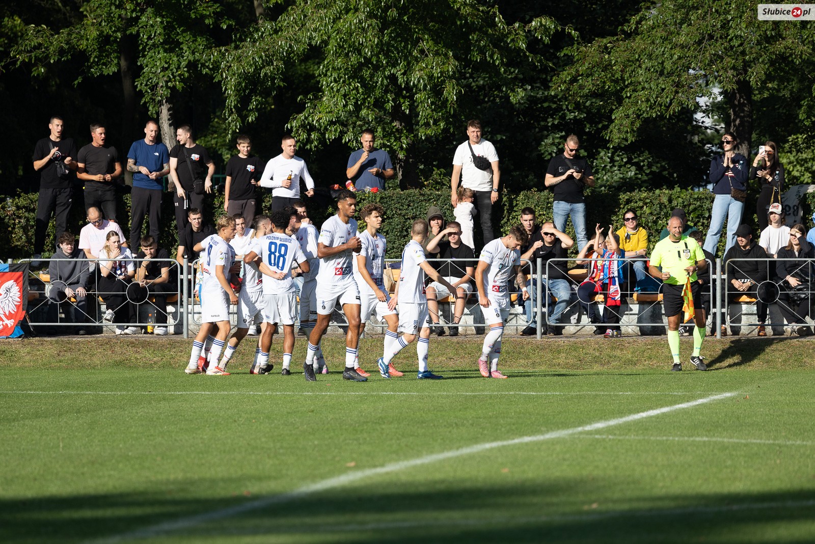 To był pierwszy domowy mecz podopiecznych trenera Krzysztofa Kaczmarczyka w tegorocznym sezonie. Na trybuny boiska bocznego Słubickiego Ośrodka Sportu i Rekreacji przyszło mnóstwo kibiców, chcących zobaczyć w akcji swoich ulubieńców.