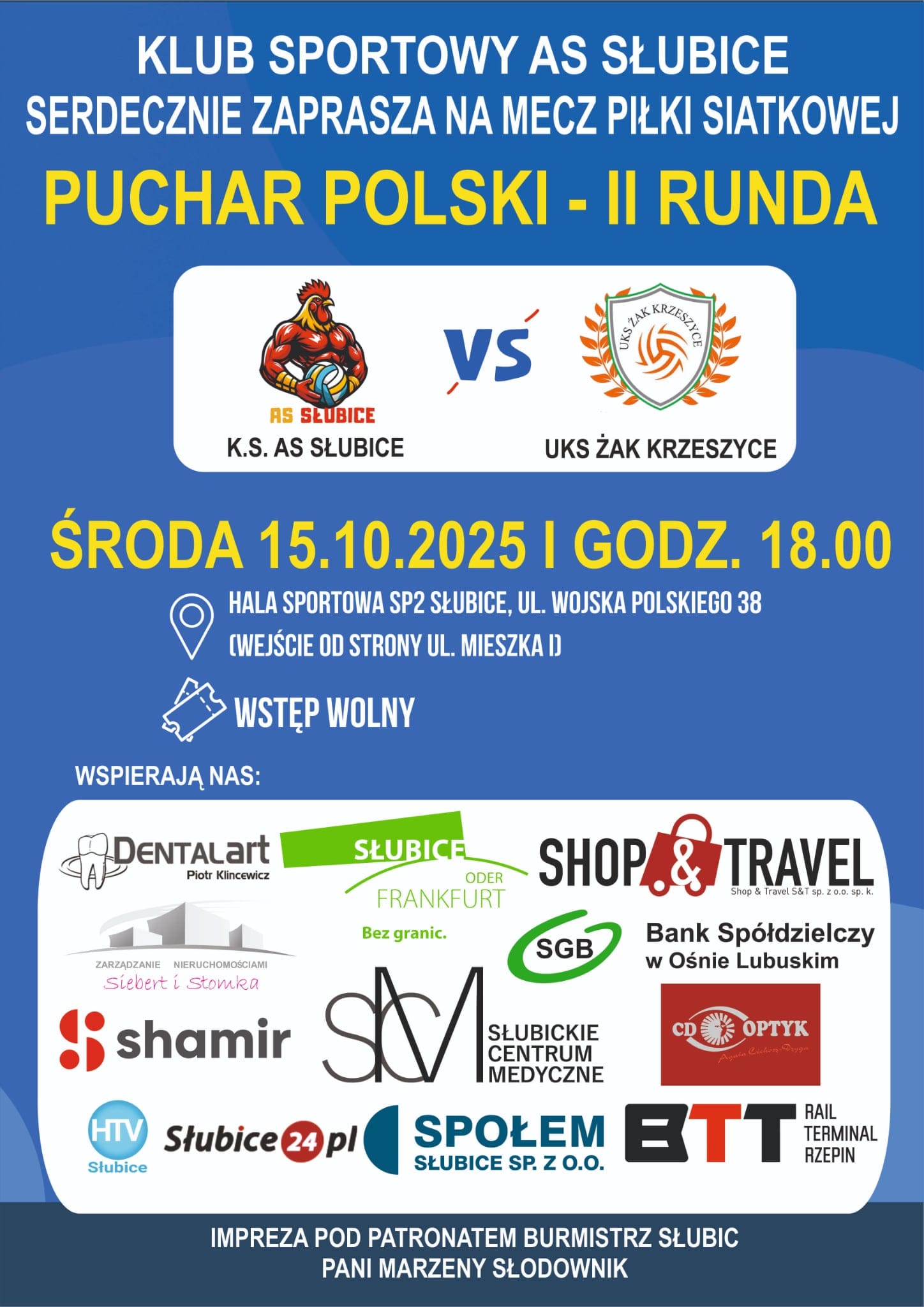 Między ligowymi pojedynkami czas na prawdziwą siatkarską ucztę! Już w środę, 15 października, drużyna AS Słubice rozegra mecz II rundy Pucharu Polski, w którym zmierzy się z zespołem UKS Żak Krzeszyce.