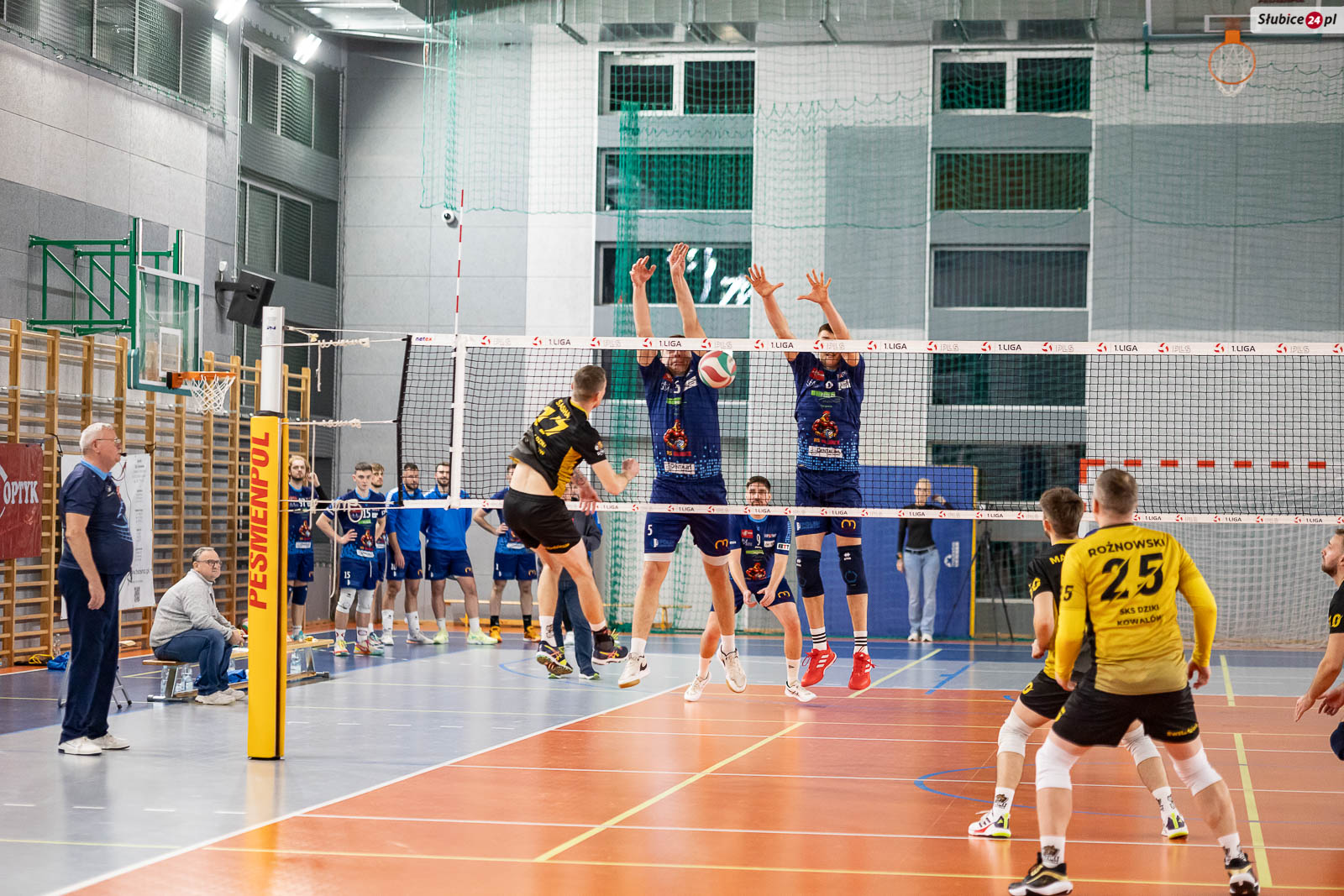 Pierwszy set pokazał, że żadna z drużyn nie zamierza odpuszczać, co doprowadziło do gry na przewagi. Ostatecznie pierwszą partię wygrali podopieczni trenera Stanisława Szablewskiego 27:25. W dwóch kolejnych partiach to słubickie koguty przejęły pełną kontrolę i zwyciężyły pewnie 25:11 i 25:15.