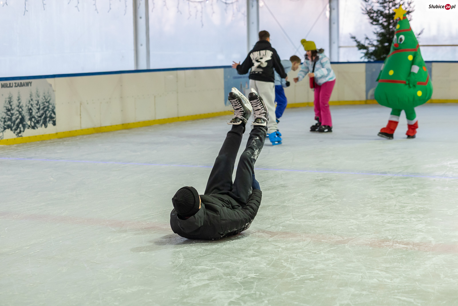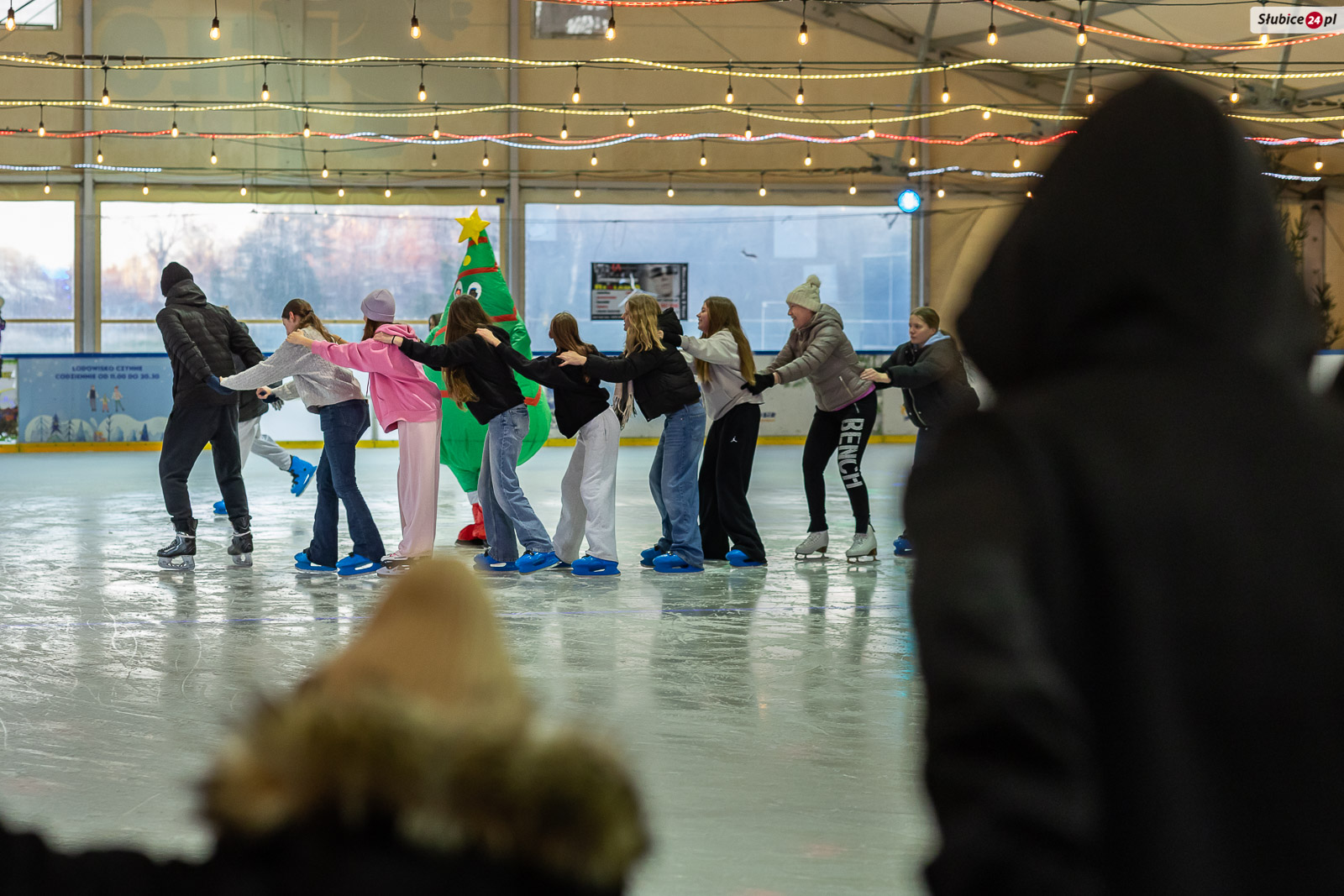 Wydarzenie miało formę bezpłatnej tercji – uczestnicy otrzymywali łyżwy i mogli swobodnie korzystać z tafli. Lodowisko ozdobiono lampkami i wokół ustawiono choinki, a tuż obok pojawiła się kolorowa ścianka z balonami do robienia pamiątkowych zdjęć.