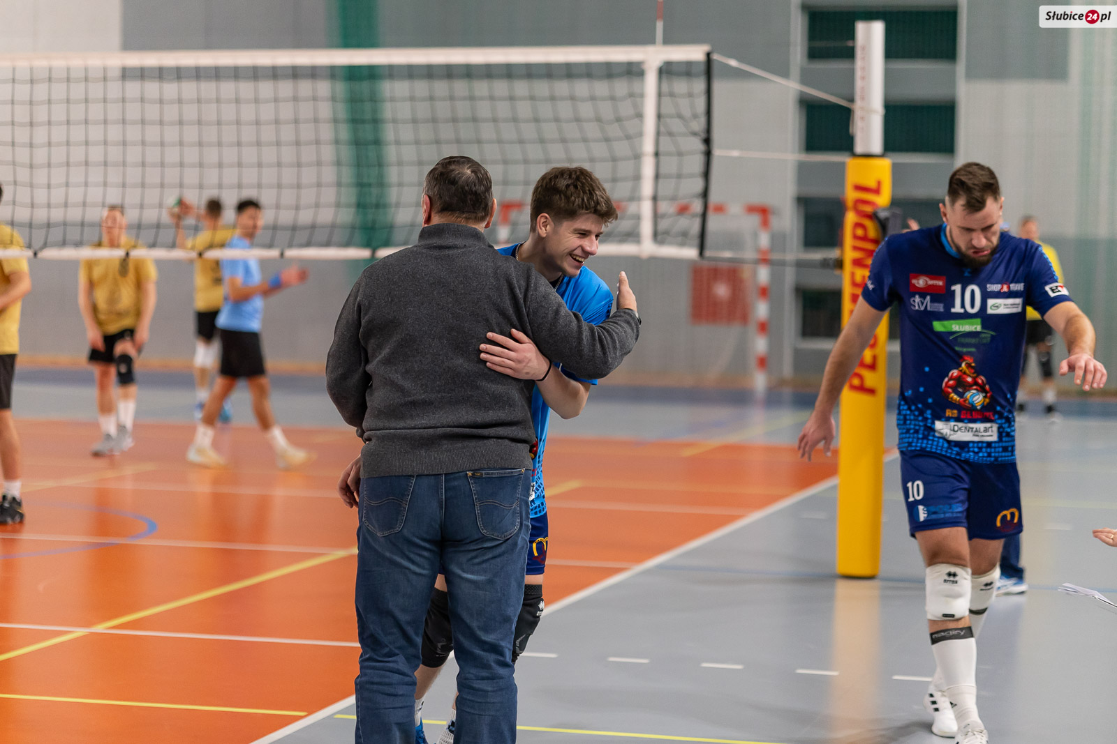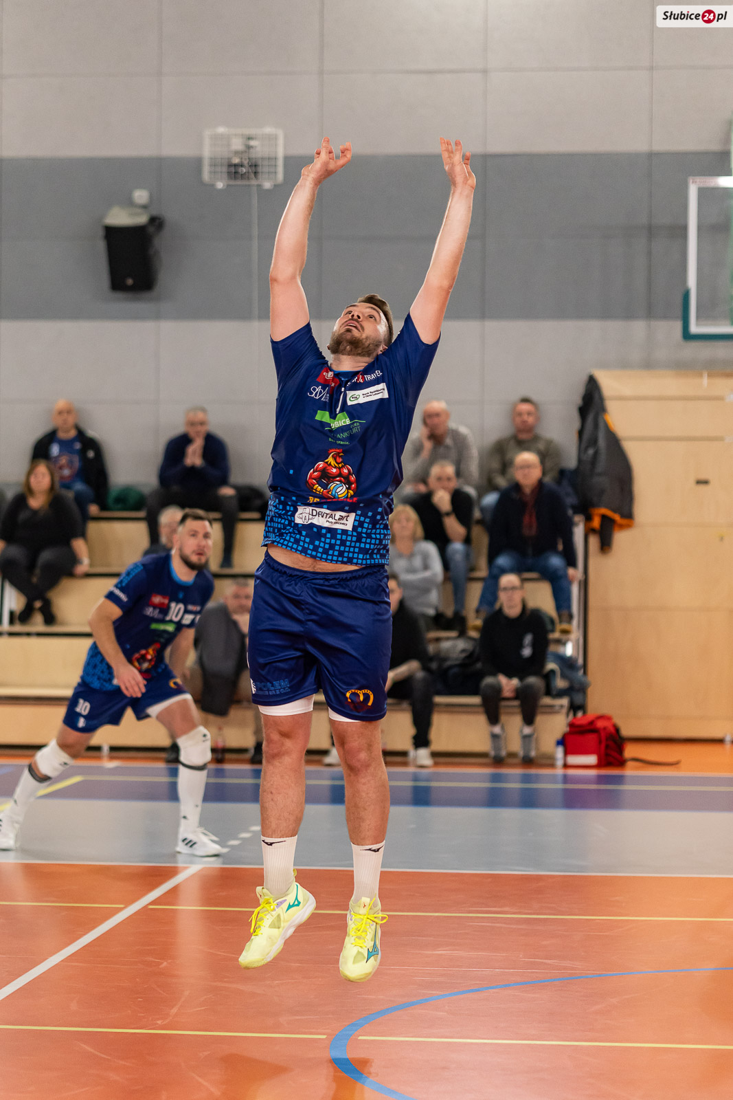 Spotkanie rozegrano 20 grudnia w hali Szkoły Podstawowej nr 2. Dla słubickiej drużyny był to rewanż za przegrany w tie-breaku mecz z początku sezonu. Tym razem słubickie koguty nie pozostawiły rywalom złudzeń – zwyciężyły w trzech setach, kolejno do 20, 12 i 23.