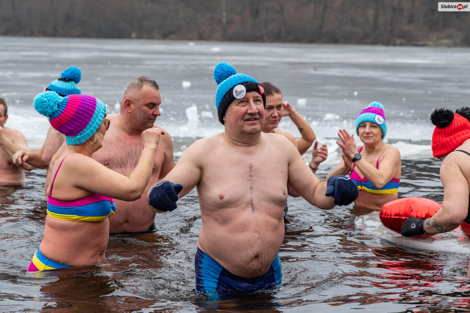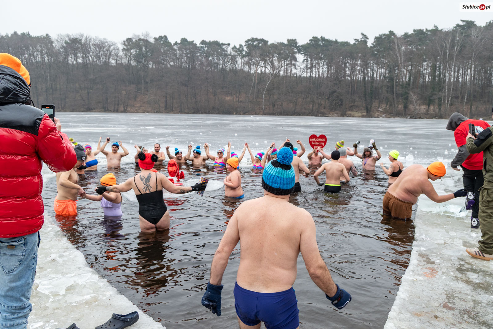 Przed lodowatą kąpielą rozgrzewkę poprowadził słubicki radny i wieloletni nauczyciel wychowania fizycznego Jarosław Sadowski. Następnie warunek był jeden – każdy uczestnik, zanim zanurzył się w jeziorze, musiał wrzucić datek do puszki WOŚP. Na wychodzących z zimnej wody na brzegu czekały dwie mobilne sauny, ognisko i poczęstunek – kiełbaski, ciasta i ciepłe napoje.