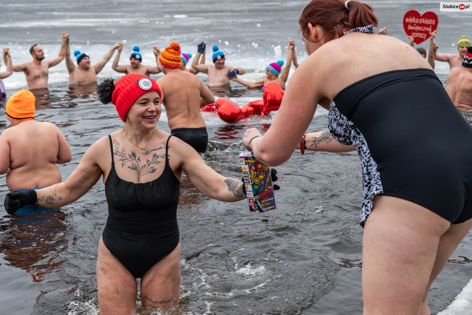 W tym roku aura dopisała: było mroźnie, a taflę jeziora pokrywała gruba warstwa lodu. Członkowie klubu wyrąbali w nim wielkie serce – symbol orkiestry. Na miejscu pojawili się też goście: burmistrzyni Słubic Marzena Słodownik, szef słubickiego sztabu WOŚP Dawid Magdulski, radni miejscy, druhowie z OSP Słubice oraz sympatycy zimowych kąpieli z Rzepina. Część z nich zdecydowała się wejść do lodowatej wody, inni wspierali wydarzenie swoją obecnością.