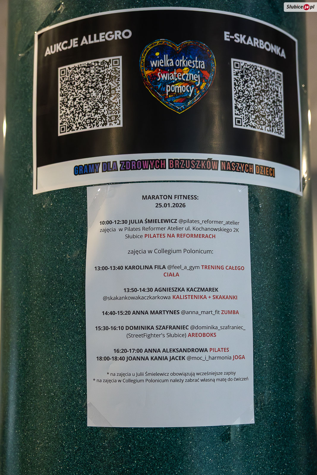 Jednym z punktów programu 34. finału Wielkiej Orkiestry Świątecznej Pomocy w Słubicach był maraton fitness. 25 stycznia przez cały dzień można było wziąć udział w zajęciach – najpierw w studiu Pilates Reformer Atelier, a następnie w Collegium Polonicum.