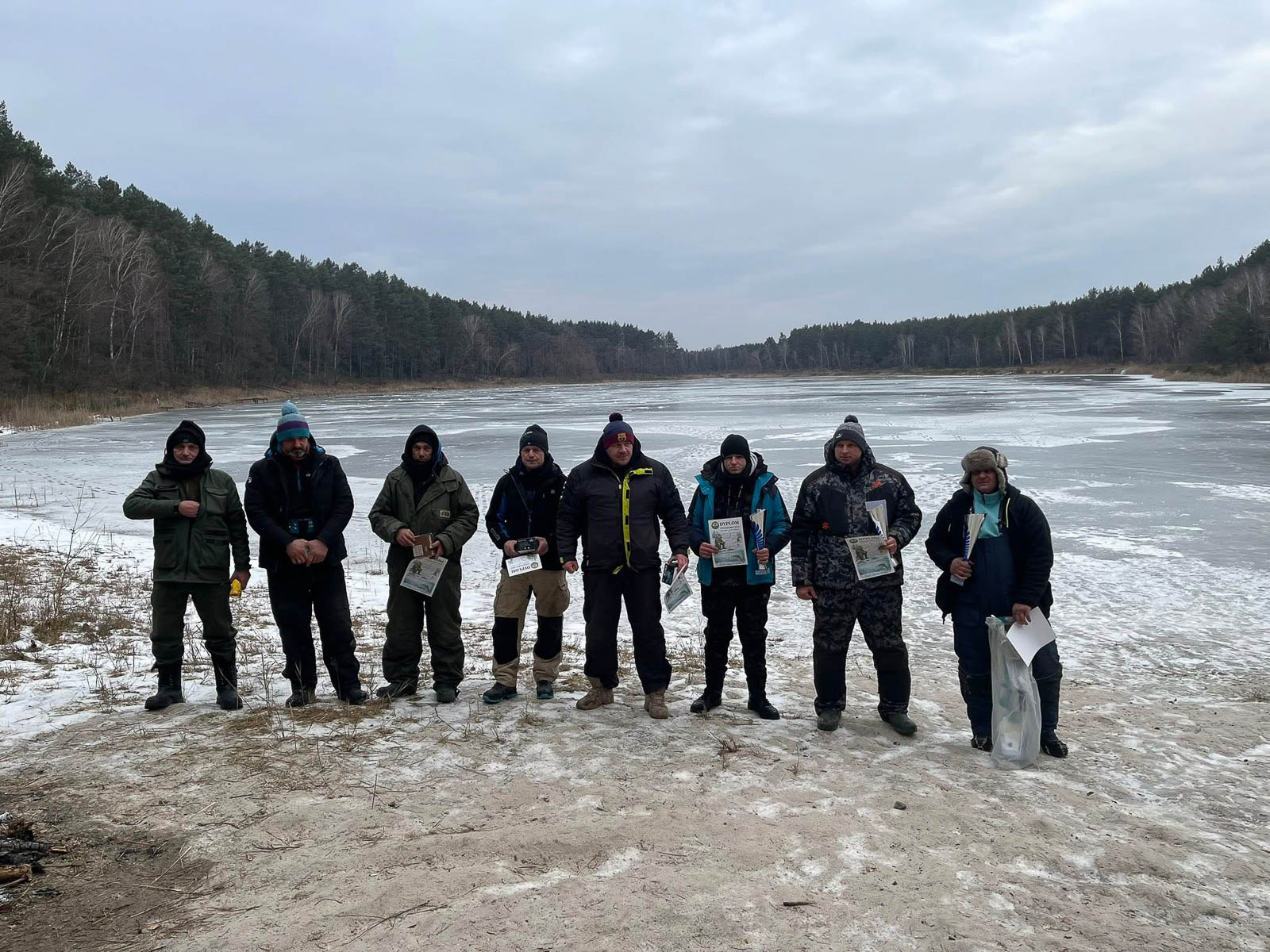 Temperatura sięgająca -9°C nie zniechęciła uczestników, którzy przez pięć godzin wytrwale szukali ryb pod lodem.