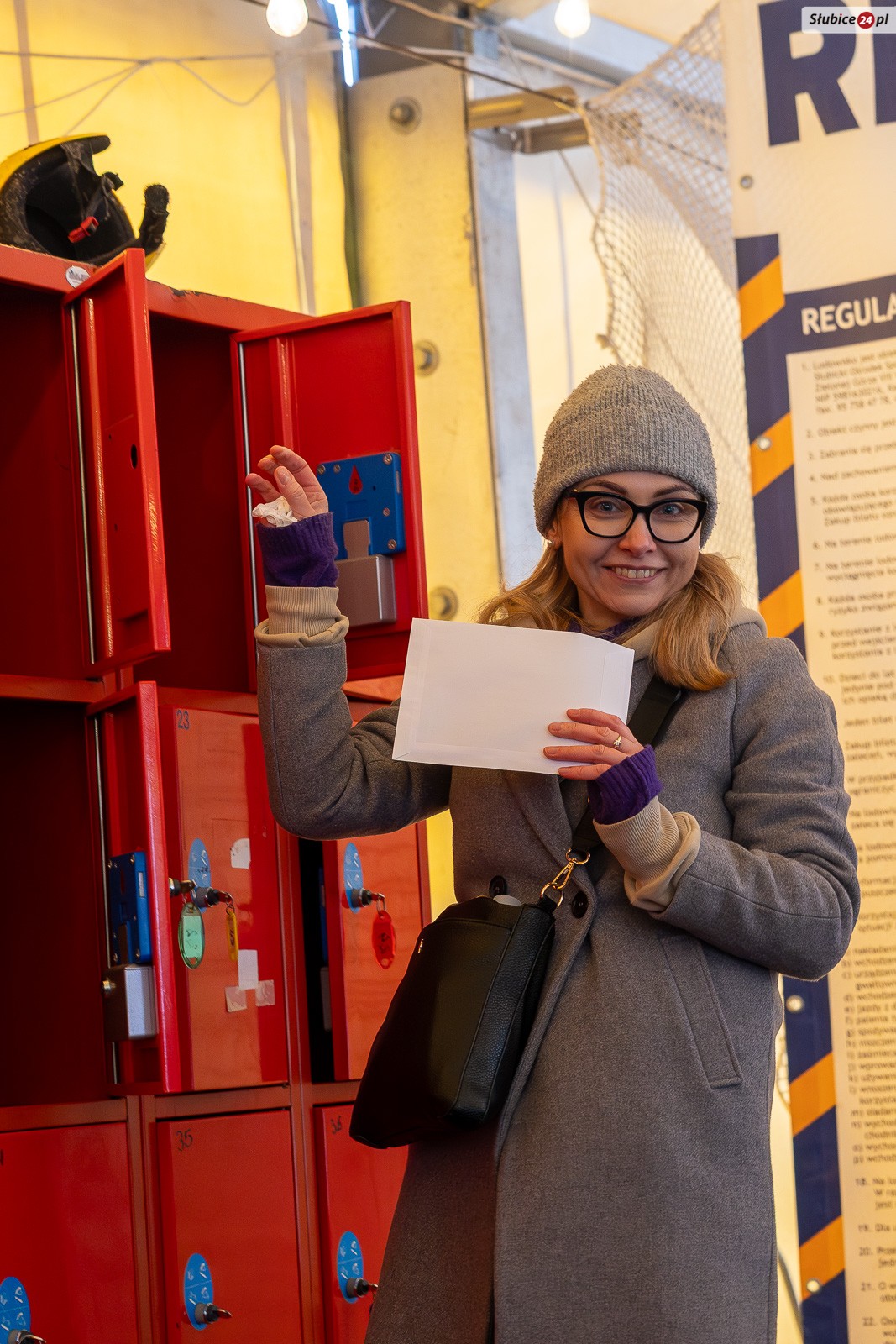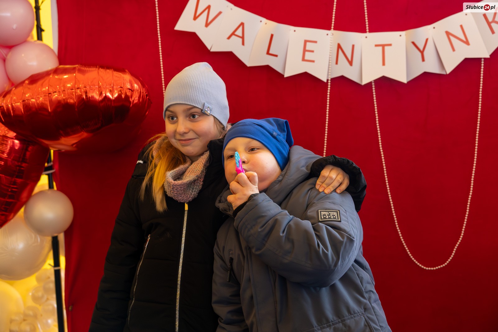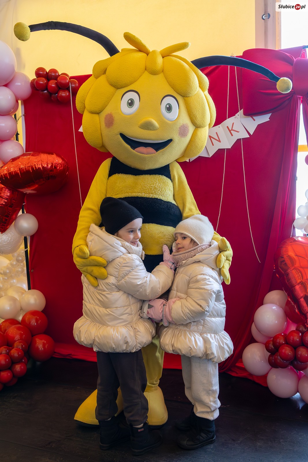 Tuż przy tafli lodowiska ustawiono też walentynkową ściankę zdjęciową z czerwonym tłem i balonami w kształcie serc. Można było z niej korzystać i zrobić sobie pamiątkowe zdjęcie z Mają, a później pojeździć z nią na łyżwach.