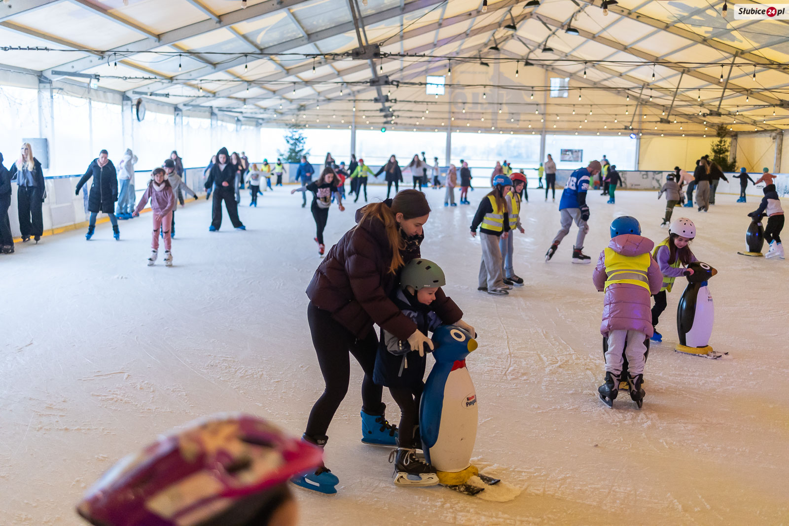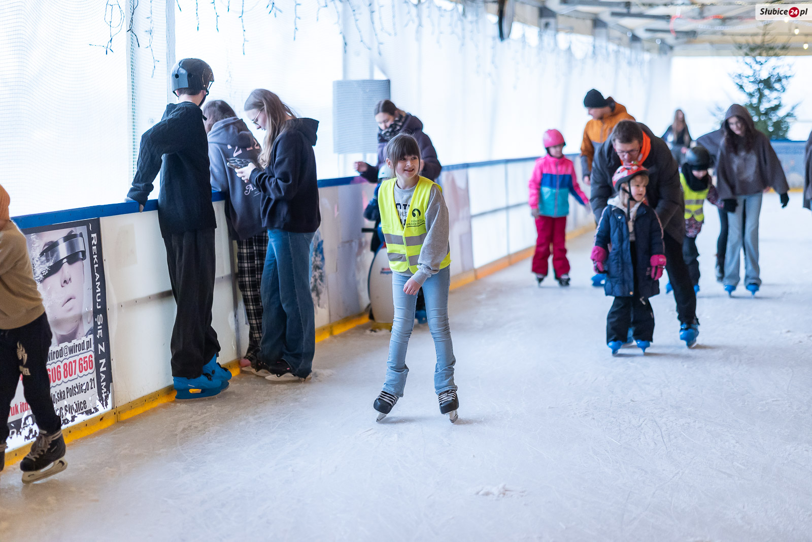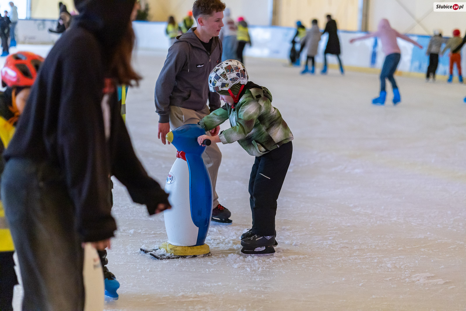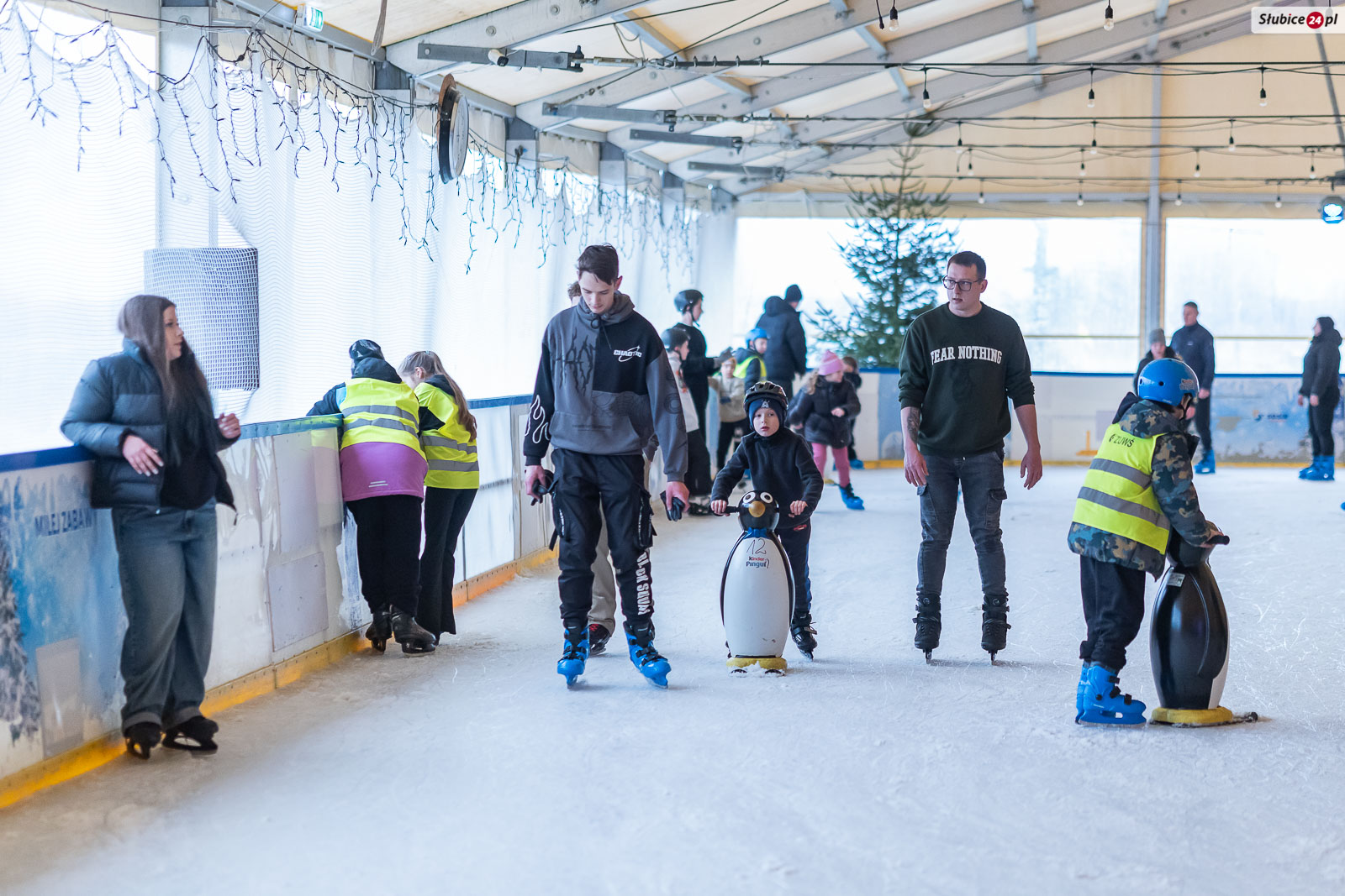 Na tafli nie brakowało chętnych. Z bezpłatnej tercji korzystały dzieci i młodzież, ale pojawiali się także dorośli – najczęściej jako opiekunowie, chociaż niektórzy również zakładali łyżwy i dołączali do najmłodszych. Dla wielu dzieci były to pierwsze próby na lodzie, więc dużym zainteresowaniem cieszyły się pingwinki, czyli specjalne podpórki do nauki jazdy.