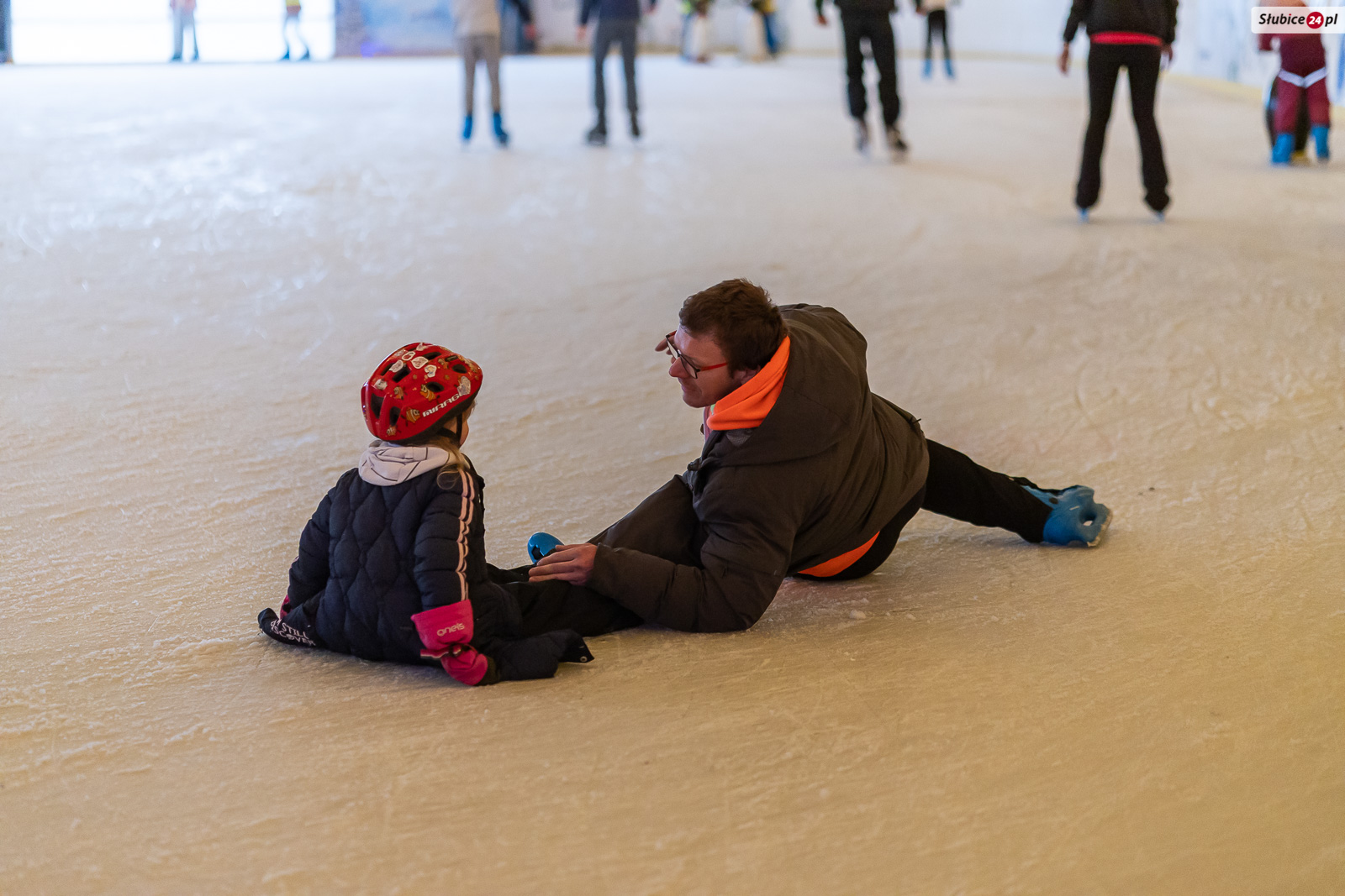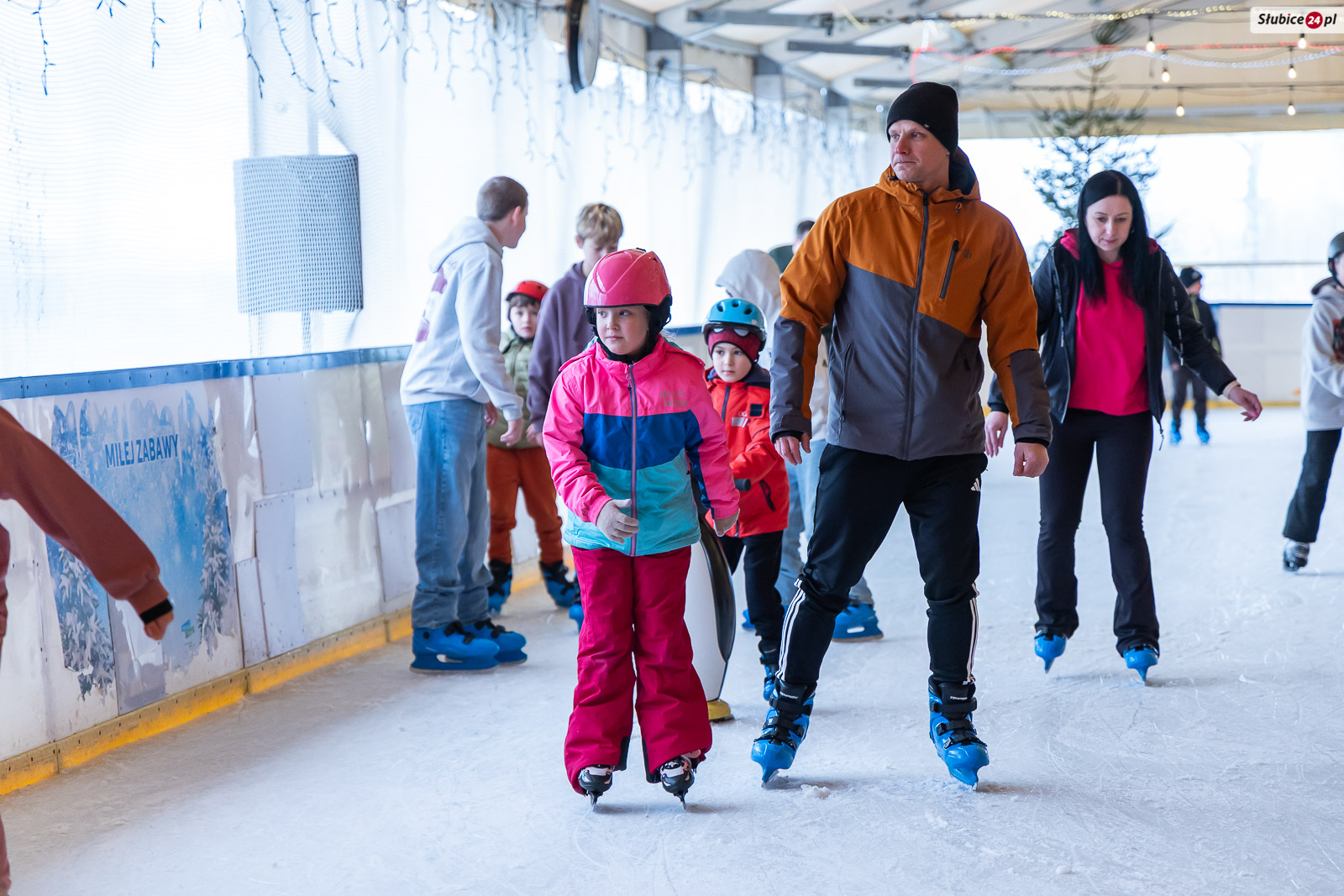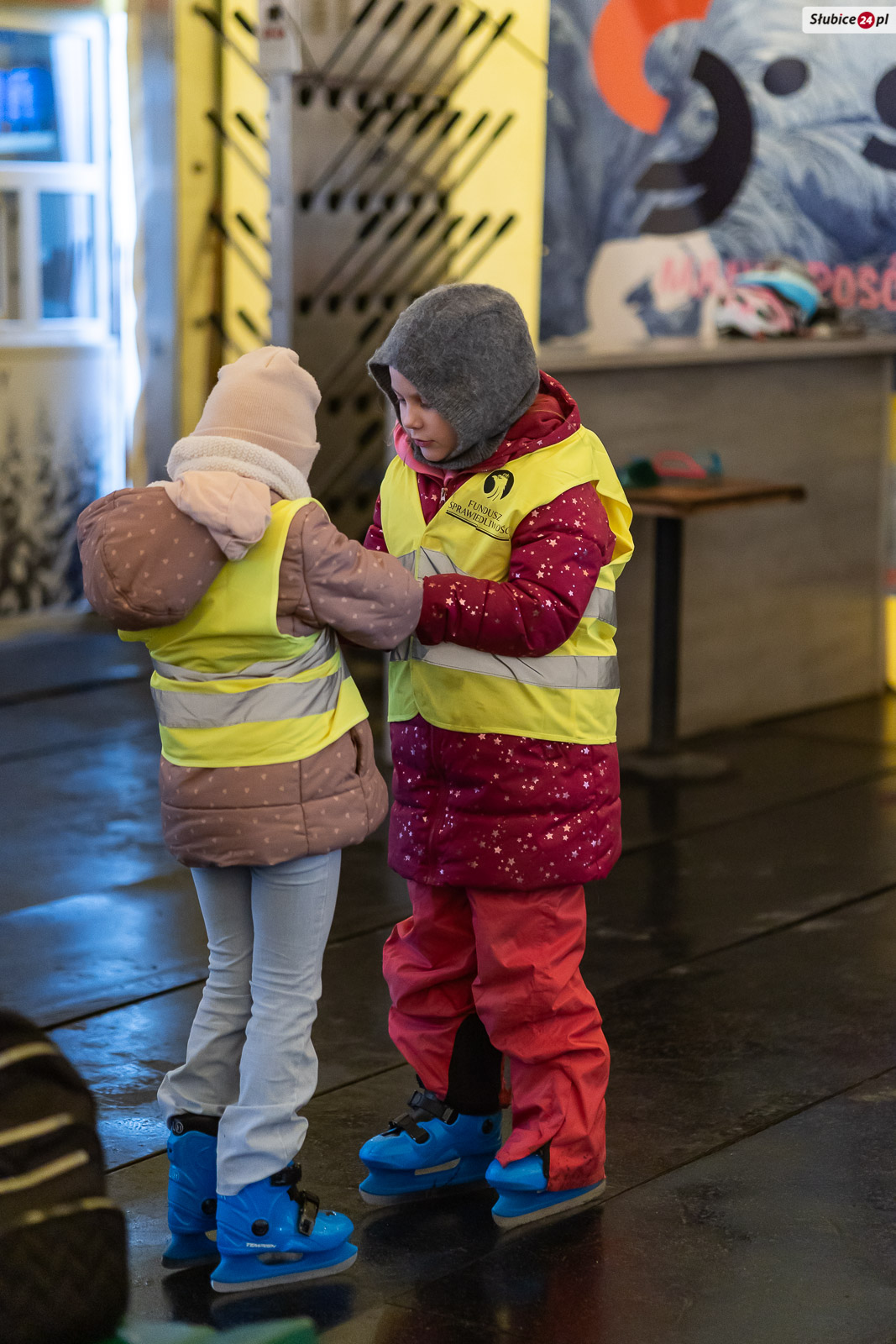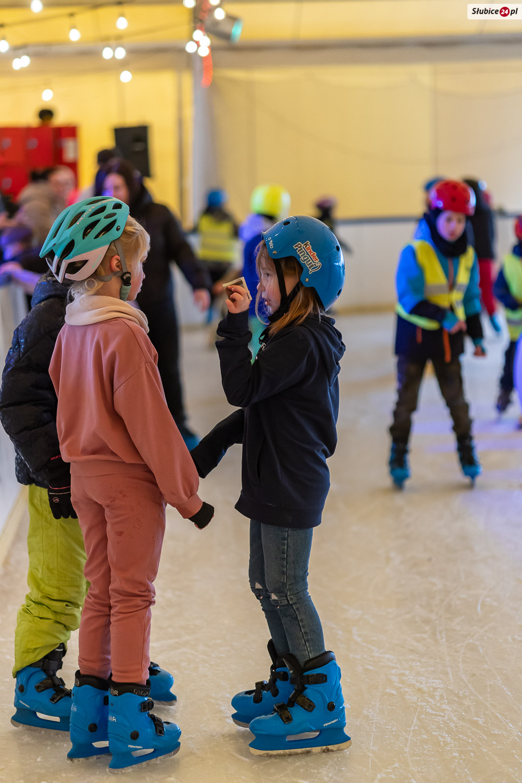 Na tafli nie brakowało chętnych. Z bezpłatnej tercji korzystały dzieci i młodzież, ale pojawiali się także dorośli – najczęściej jako opiekunowie, chociaż niektórzy również zakładali łyżwy i dołączali do najmłodszych. Dla wielu dzieci były to pierwsze próby na lodzie, więc dużym zainteresowaniem cieszyły się pingwinki, czyli specjalne podpórki do nauki jazdy.