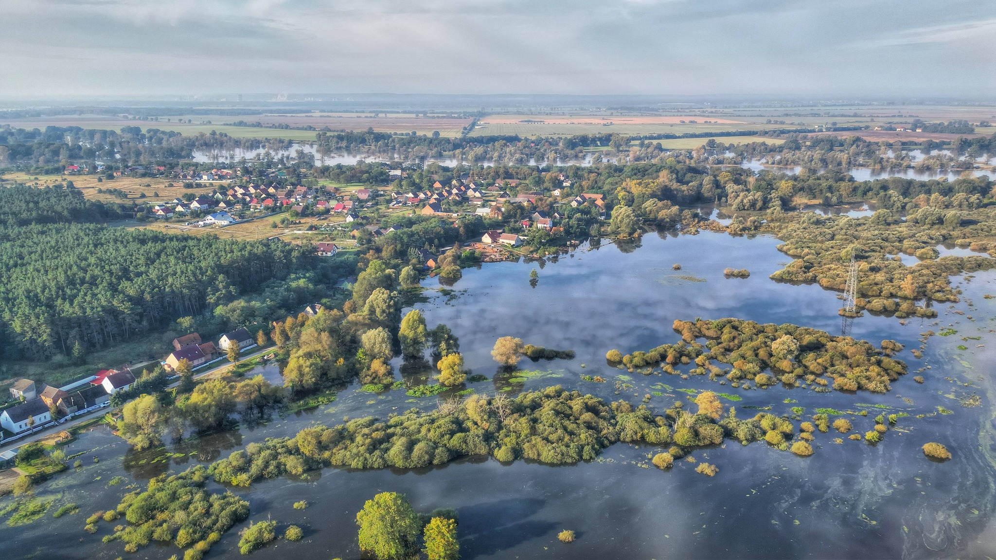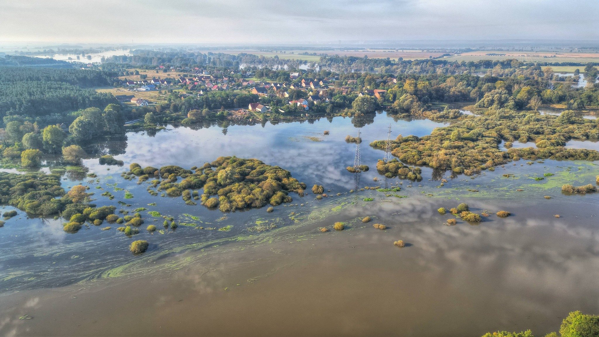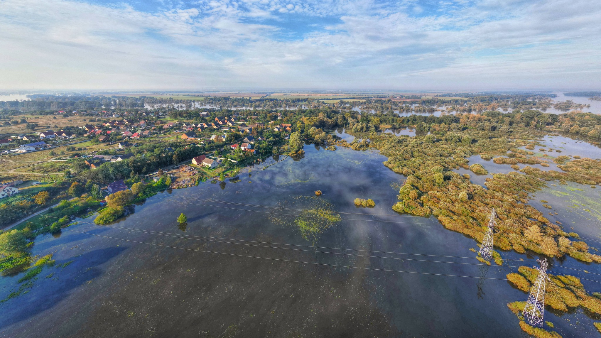 Prezentujemy zdjęcia z drona udostępnione naszej redakcji przez KolinSKY DRONE. Jak przekazał autor, materiał został wykonany poza wyznaczoną strefą zakazu lotów nad Odrą.