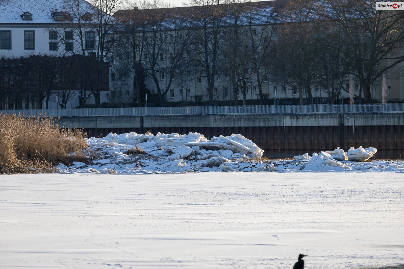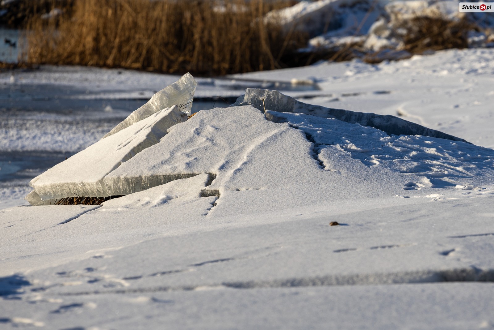 Krótkotrwałe ocieplenie zmieniło sytuację. Lód ruszył, a Odra ponownie zaczęła swobodnie płynąć. Nurt porwał tafle i wyrzucił je na brzeg. Dziś wzdłuż rzeki zalegają grube, duże kry, które miejscami sięgają aż do wału przeciwpowodziowego. Niektóre bryły zostały wypiętrzone wysoko przez napierające kolejne tafle, tworząc nieregularne lodowe zwały.