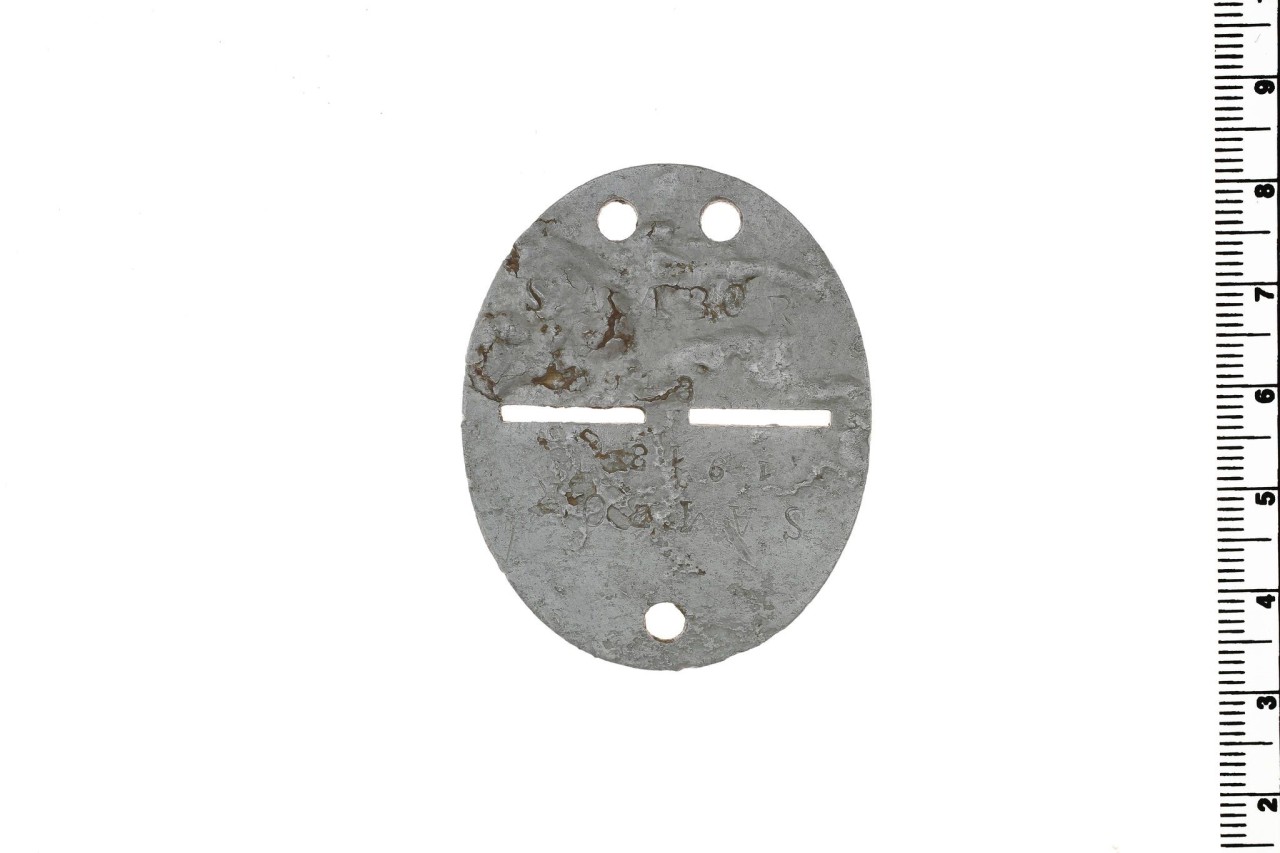 Ryc 3. Ocalały nieśmiertelnik weterana Jana Śliwki (1913-1974) wg wz. 1939 - rewers. Fot. prof. Grzegorz Podruczny.