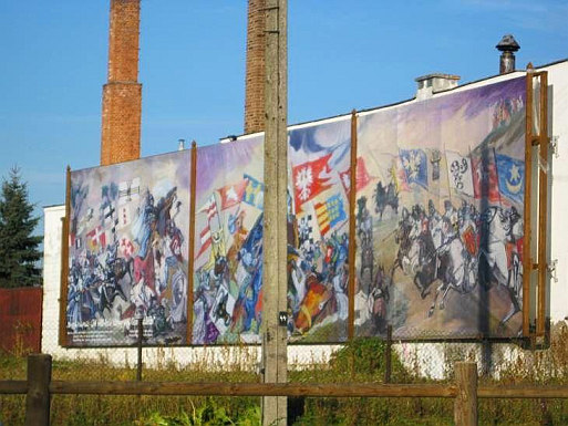 Ścianę jednego z miejscowych budynków przyozdobiono natomiast okazałym malowidłem walczących chorągwi, wzorowanym na „Bitwie pod Grunwaldem” Jana Matejki (zdjęcie poniżej). Trwają prace na restauracją „starego cmentarza”, na którym znajduje się wiele XIX-wiecznych grobowców, których obecności nie powstydziły się nawet warszawskie Powązki.