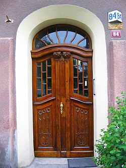 Innym pozytywnym przykładem są robione na zamówienia drzwi zabytkowych poniemieckich kamienic. Drzwi takie wykonywane są wzór lub podobieństwo drzwi z przedwojennej epoki (poniżej zdjęcie drzwi wejściowych do kamienicy przy ul. Kopernika 84). Jeden z napotkanych przeze mnie mieszkańców tego domu powiedział mi: „Drzwi wymagały wyłożenia kilku tysięcy złotych przez mieszkańców klatki, ale według mnie - mimo wszystko - było warto. Teraz kamienica wygląda elegancko i reprezentacyjnie. O wiele przyjemniej się mieszka i nie ma wstydu zaprosić do domu gości”.