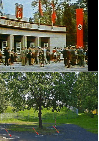 W wojennym roku 1915 rozpoczęły się prace ziemne na zachodnim zboczu wzgórza Kleista. Do tych bardzo rozległym prac ziemnych zaangażowano już wspomnianych rosyjskich jeńców z obozu Gronenfelde. Powoli przedostawano się wgłąb flanki wzgórza Kleista a masy ziemi wyrzucano tuż obok, aby uzyskać płaską powierzchnię do zawodów stadionowych. Tu spoglądamy w kierunku cmentarza komunalnego.