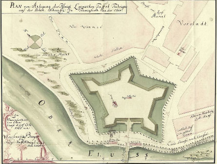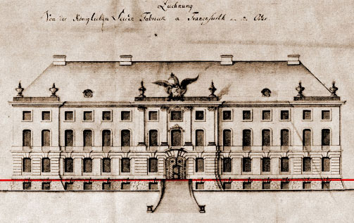 Król Prus Fryderyk Wielki zarządził w 1766 r. nie tylko budowę fabryki jedwabiu we Frankfur-cie nad Odrą, ale też ją opłacił. W rachubę wchodziły dwie lokalizacje. Albo plac musztry An-ger w zachodniej części miasta albo na gwiaździstym szańcu. Mimo gorszych uwarunkowań gruntowych wybrane miejsce po wschodniej stronie Odry.