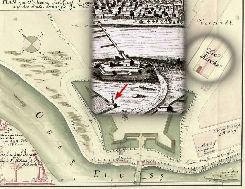 Na modelu miasta we frankfurckim Muzeum Viadrina, który przestawia okres ok. 1550 r., wskazuje również sytuację na wschodnim brzegu Odry.