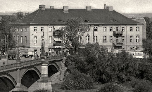 A to widok po przebudowie w 1935 r., jeszcze do zobaczenia na zdjęciu lotniczym z 1953 r. Dzisiaj rozpoznać można tylko resztki fundamentów na placu używanym jako parking.