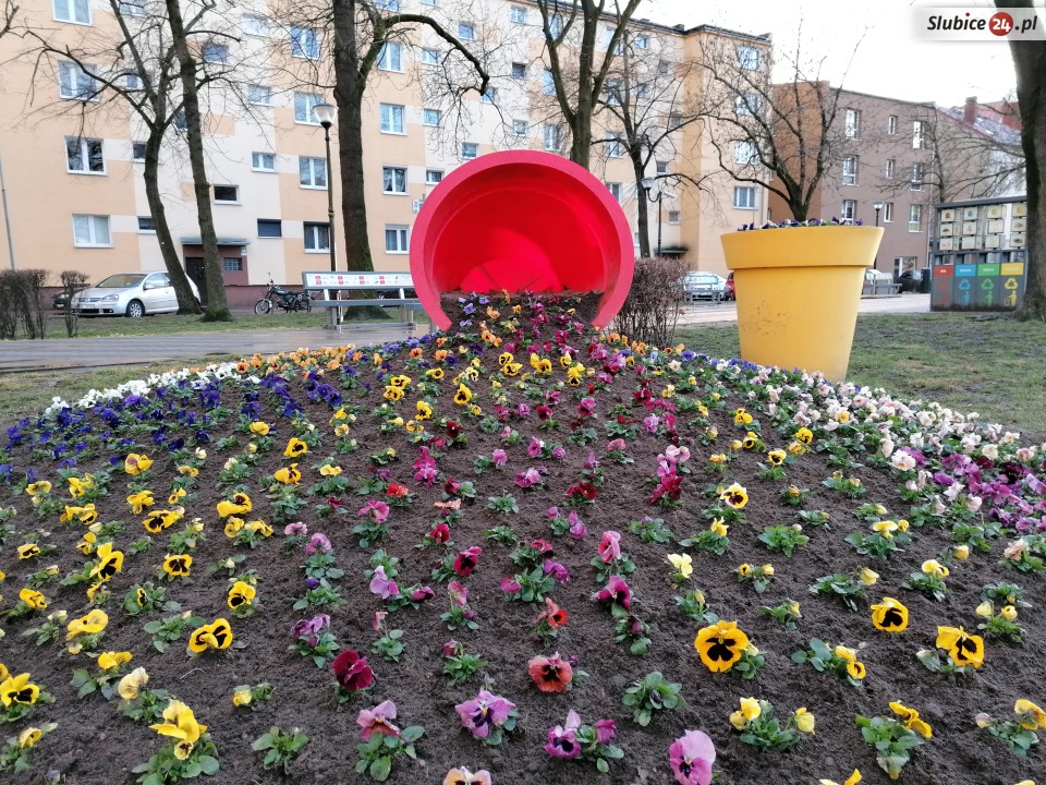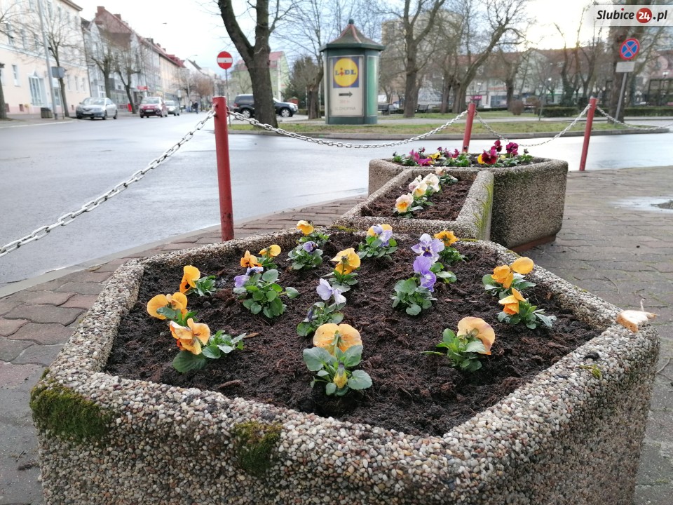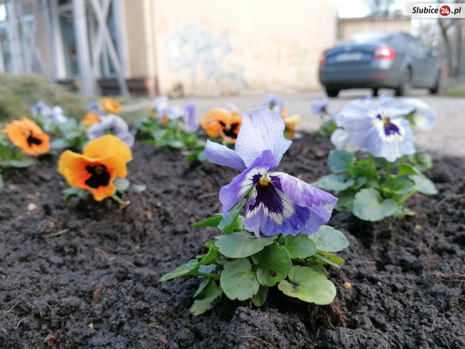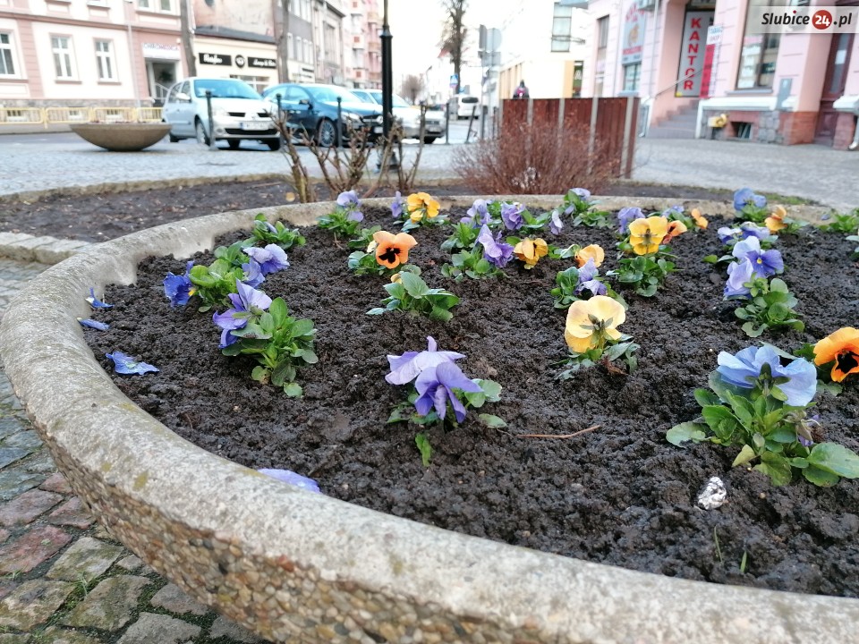 Spacerkiem po mieście spotkaliśmy... kolejne oznaki wiosny. Tak, w Słubicach robi się coraz bardziej wiosennie! A to za sprawą bratków, które już zaczęły pojawiać się na miejskich klombach.