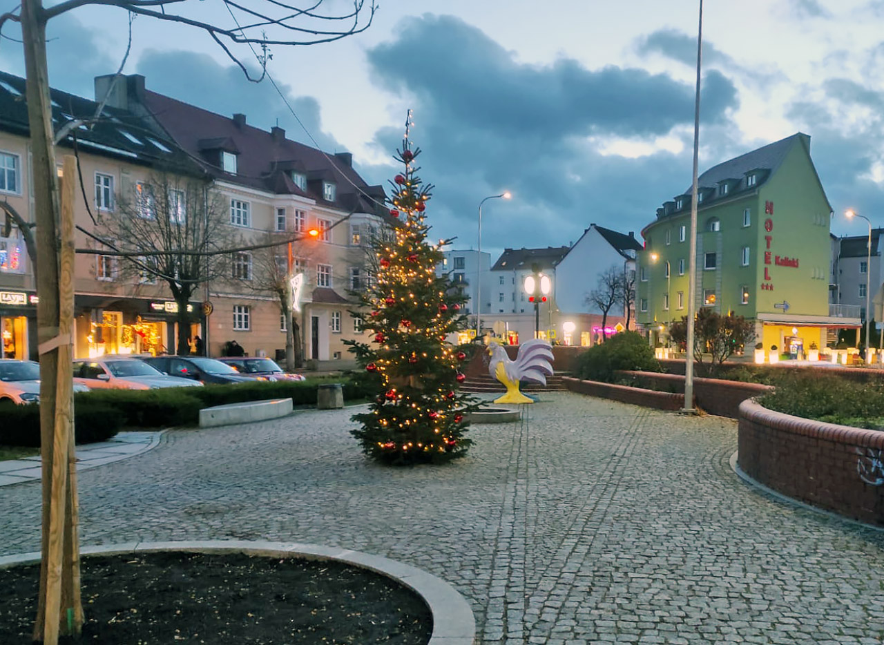 Dzisiaj rano pisaliśmy o wywróceniu przez wiatr sztucznej choinki miejskiej, która była zamontowana przy pl. Przyjaźni (ZOBACZ). Kilka godzin później zajrzeliśmy ponownie do parku, a tam w międzyczasie stanęła nowa choinka - mniejsza, ale tym razem żywa.