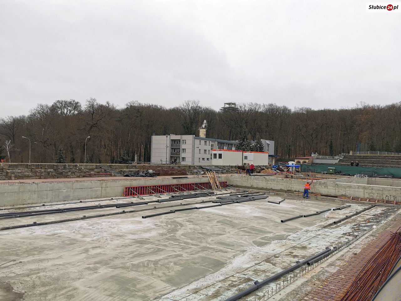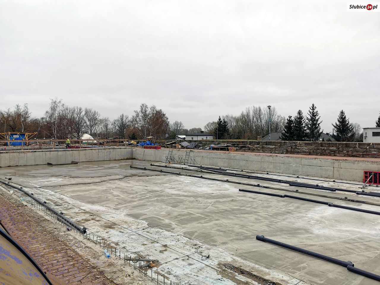 Te rozpoczęły się na początku jesieni ubiegłego roku i cały czas trwają. Wylano już betonowe podłoże i ściany, a obecnie układane są instalacje wodne.