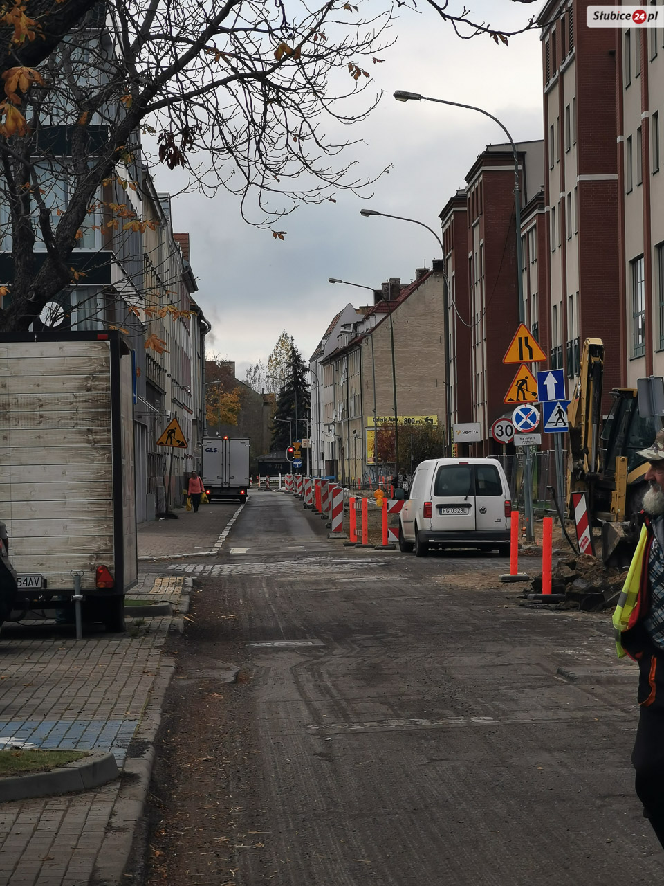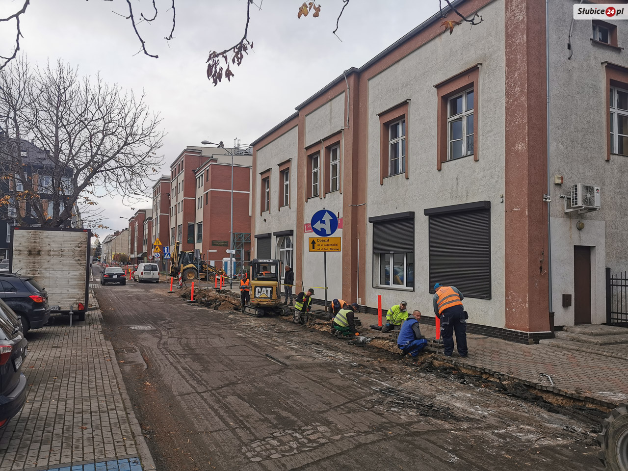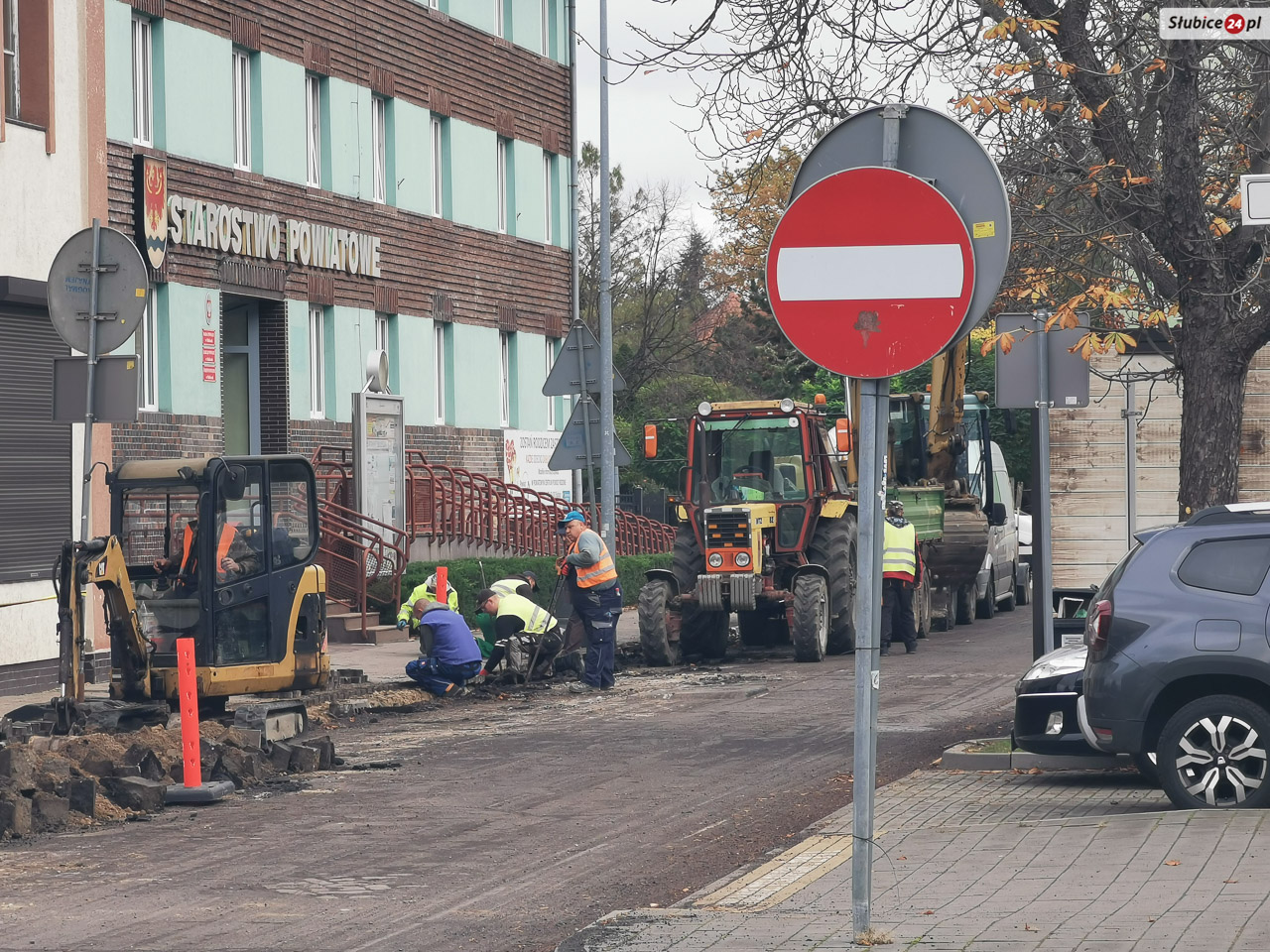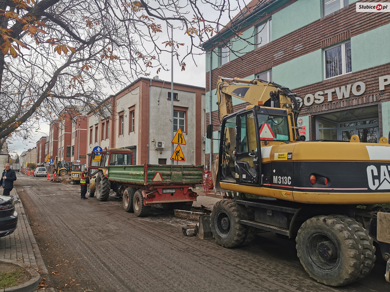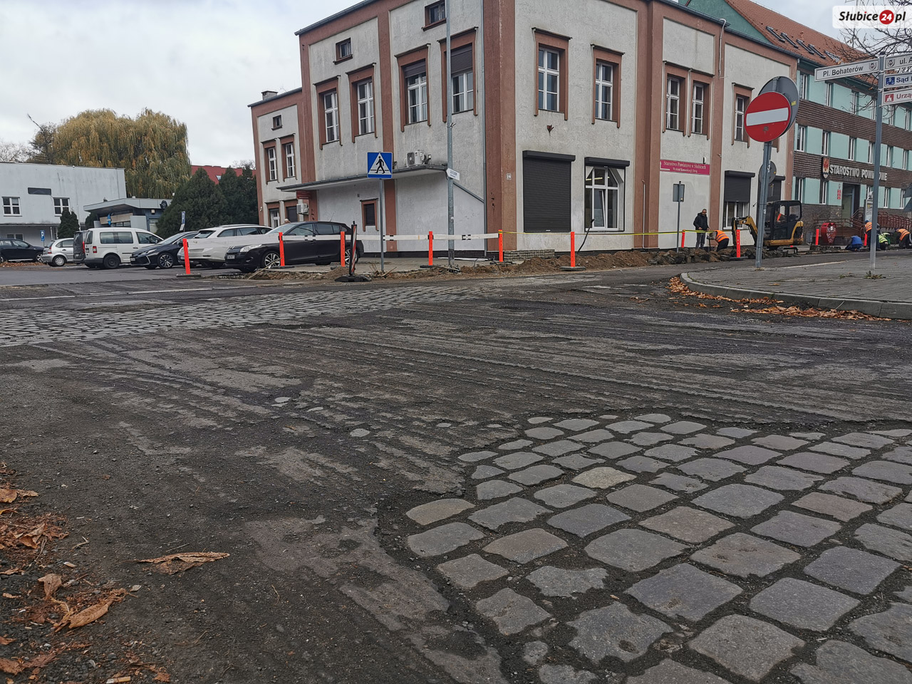 Dzisiaj zaglądamy na ul. Piłsudskiego, gdzie trwają prace budowlane związane z przebudową drogi. Obecnie ciężki sprzęt wjechał w okolice Starostwa Powiatowego w Słubicach.