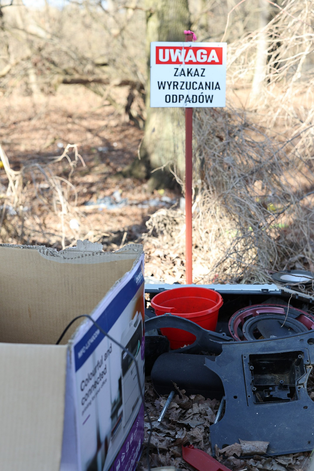 Na początku marca rezerwacie po raz kolejny natrafiono na porzucone odpady. Wśród nich znalazły się m.in. elementy samochodowe, opona, części sprzętu elektronicznego oraz różnego rodzaju tworzywa sztuczne. Co szczególnie bulwersujące, śmieci zostały pozostawione tuż obok tablicy informującej o zakazie wyrzucania odpadów.