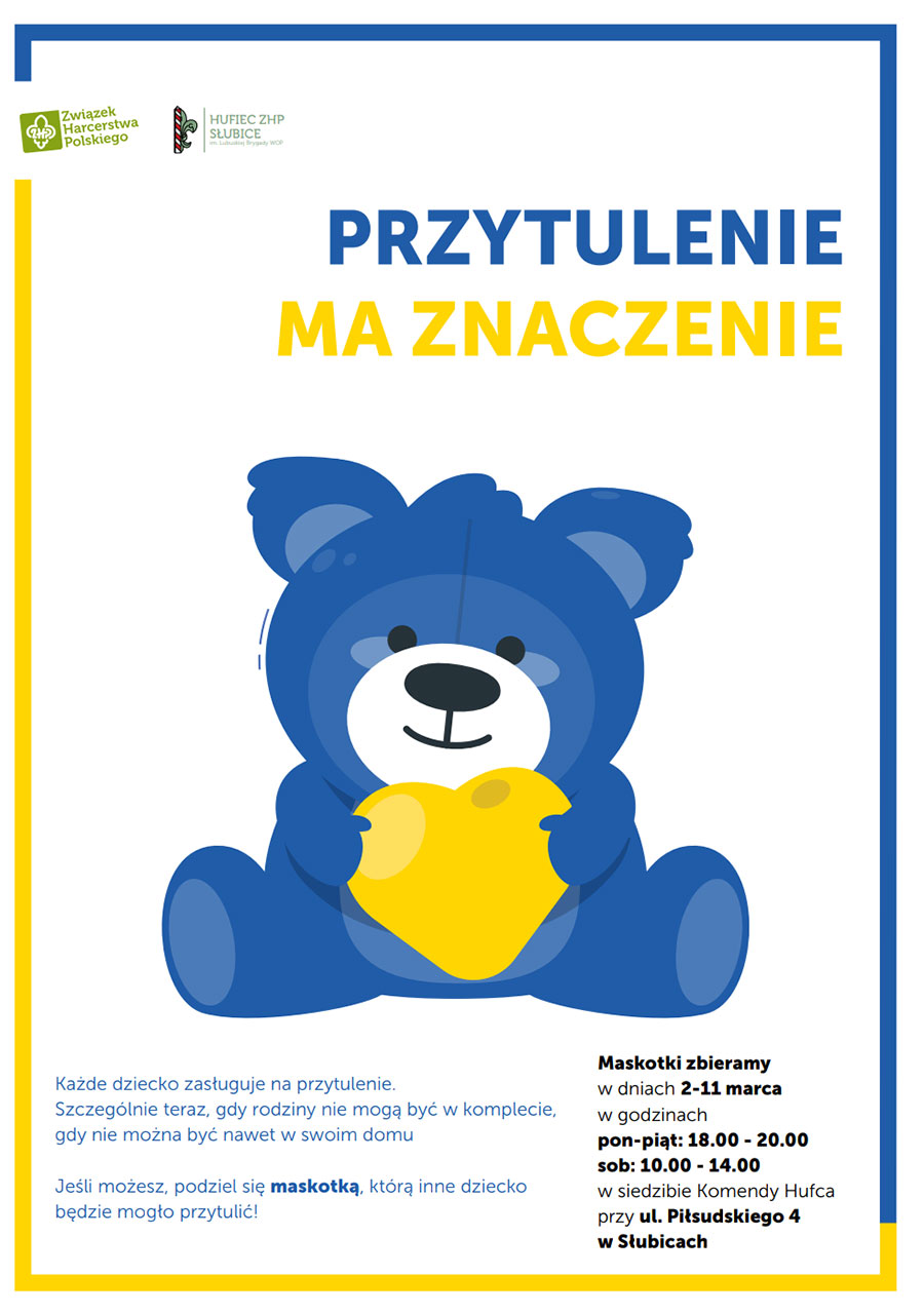 Maskotki można przekazywać od 2 do 11 marca w siedzibie komendy hufca przy ul. Piłsudskiego 4 w Słubicach.