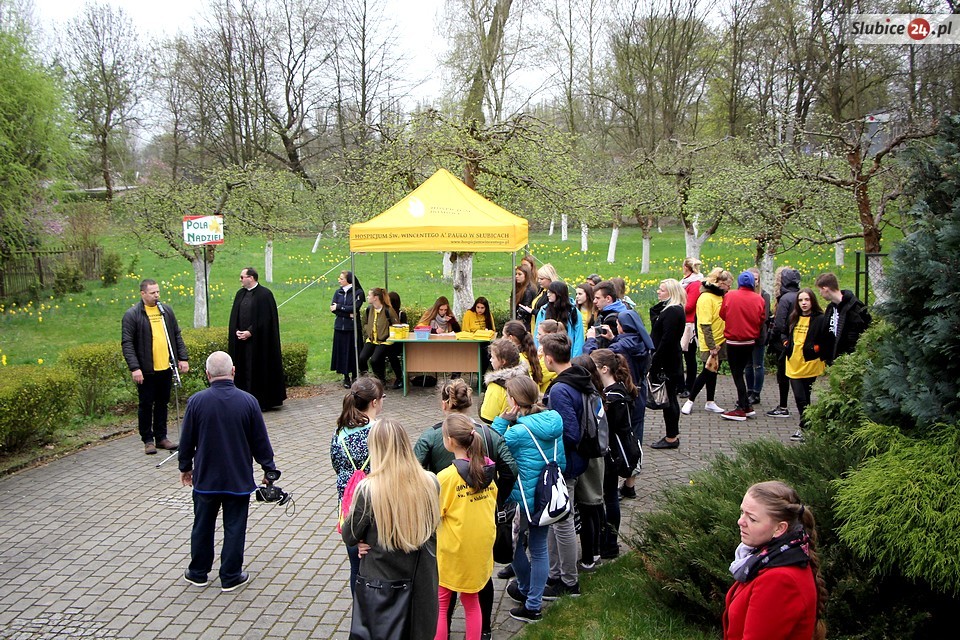 Uroczysta inauguracja akcji pod przewodnictwem proboszcza parafii ks. Tomasza Partyki oraz szefa słubickiego hospicjum Przemysława Szewielińskiego odbyła się równo w południe. Najpierw zebrano wszystkie kwiaty, a następnie pobłogosławieni przez proboszcza młodzi wolontariusze ruszyli w miasto. W zbiórce na rzecz hospicjum nie przeszkodziła im nawet deszczowa pogoda. Napotykani po drodze mieszkańcy Słubic chętnie wrzucali datki do puszek.
