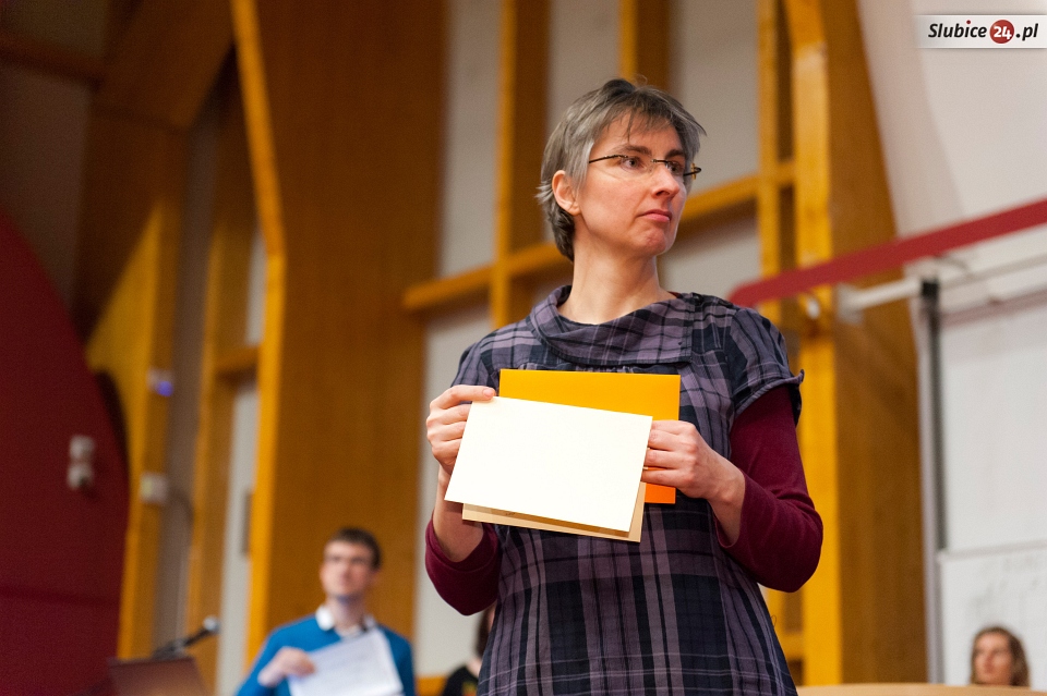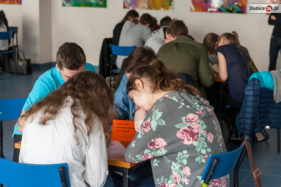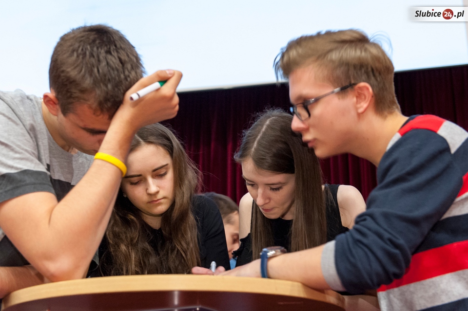 Z pomieszczeń laboratorium krótka droga do uczelnianej auli, a tam także sporo się działo. Najpierw wszyscy chętni zmierzyli się w walce o tytuł mistrza fotografii w ósmej już edycji słubickiego dyktanda (o tym pisaliśmy w osobnej publikacji). Następnie przyszedł czas na językowe zmagania w turnieju "Na miejsca, fertig, go" przygotowanym przez Astrid Kapler i Agnieszkę Skwarek. Tu młodzi ludzie nie zawiedli i w lingwistyczne szranki stanęło aż 7 szkół z całego woj. lubuskiego. Najlepiej wypadła drużyna z I Liceum Ogólnokształcącego w Świebodzinie. Reprezentacja słubickiego "Ogólniaka" była trzecia.