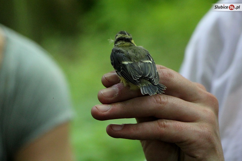 Przyrodnicy połączyli ornitologiczny rekonesans z obrączkowaniem piskląt. Niestety, większość ptaków była już nieco zbyt duża do nałożenia obrączek, ale dwójka maluchów je dostała. Każdy mógł też im przyjrzeć się z bliska.