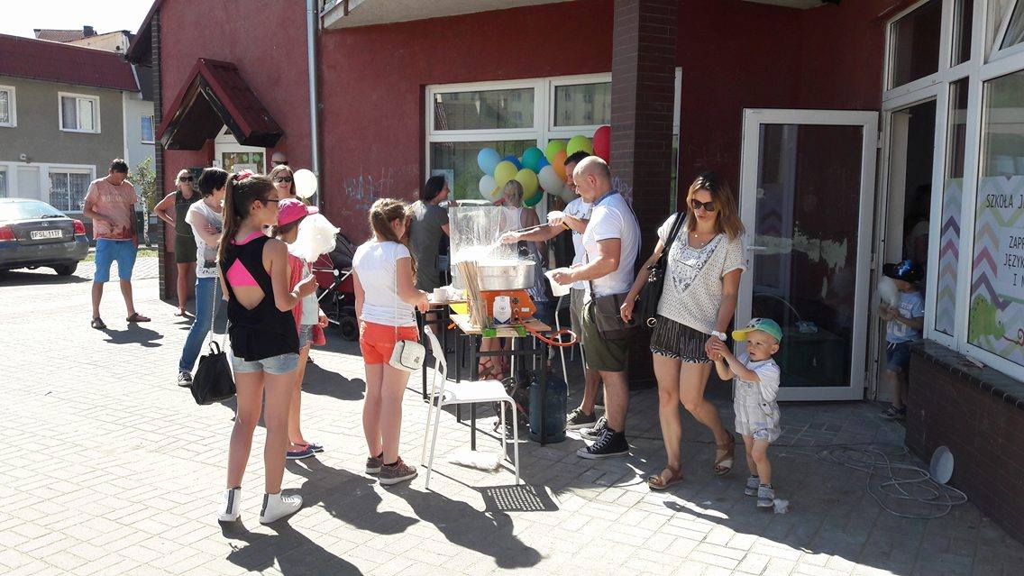 Zainteresowanie happeningiem było bardzo duże. W ciągu niespełna dwóch godzin rozeszło się kilkadziesiąt balonów z helem, a smakoszom waty cukrowej wydano aż 200 sztuk tego słodkiego deseru. Przed wejściem do szkoły było radośnie, gwarno i kolorowo. Obecni i przyszli kursanci z zaciekawieniem zaglądali do nowej siedziby szkoły, gdzie już od 29 maja przyjedzie im rozwijać językowe talenty.
