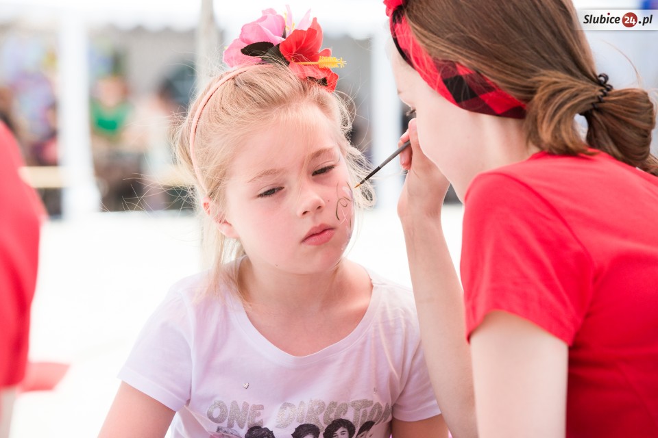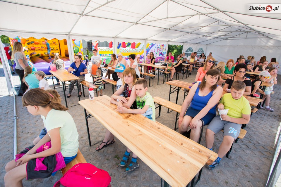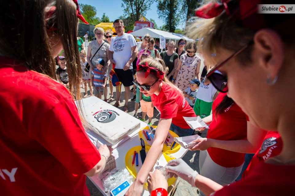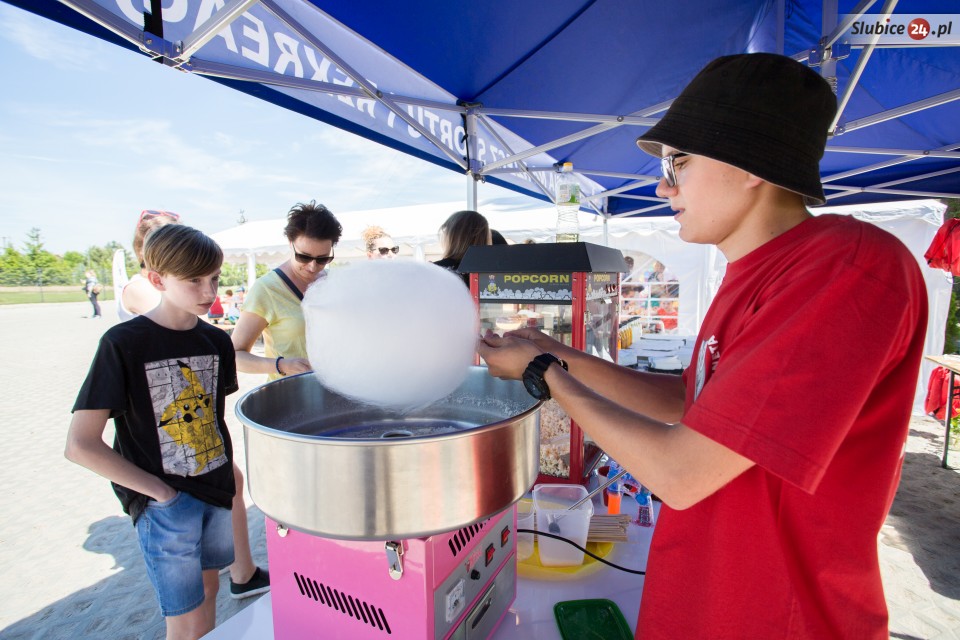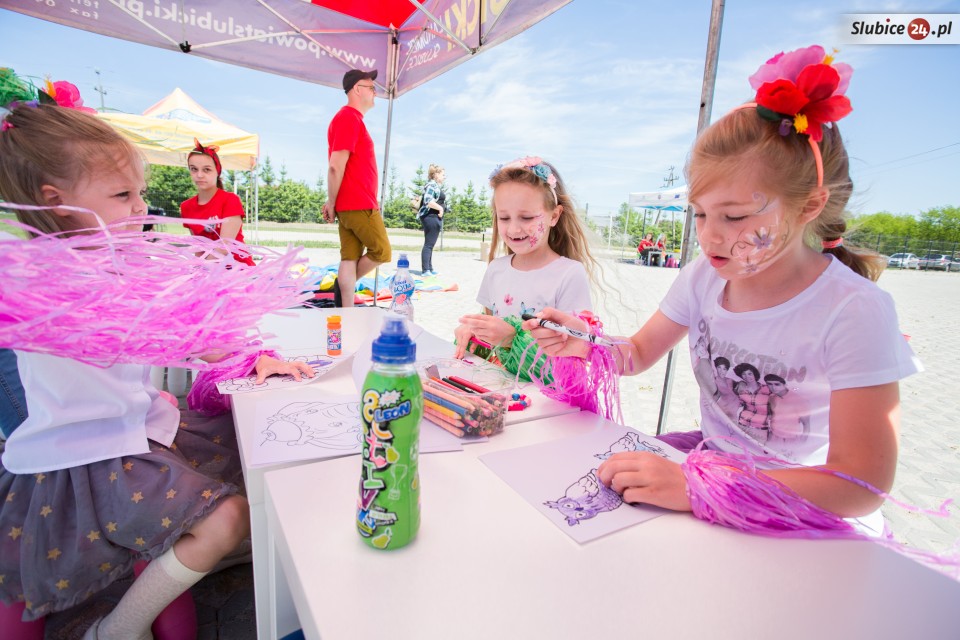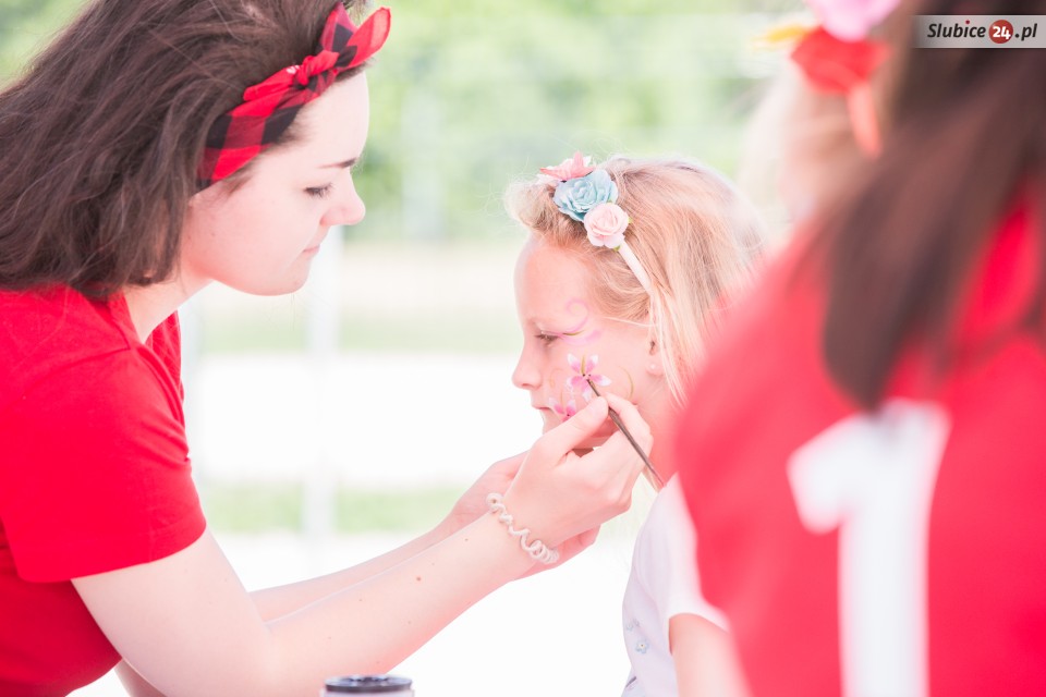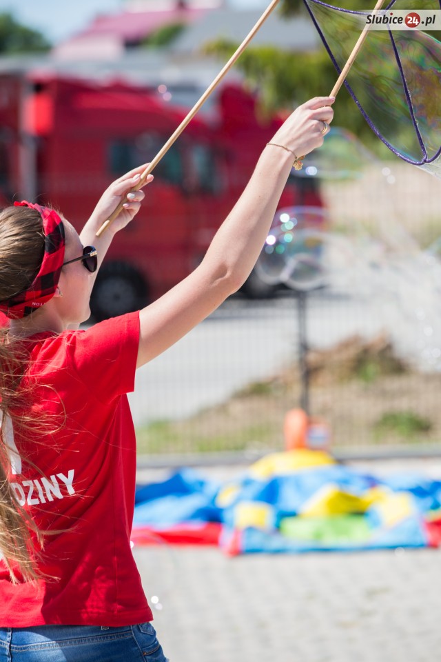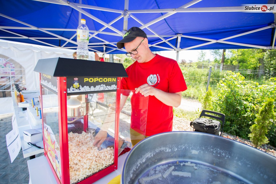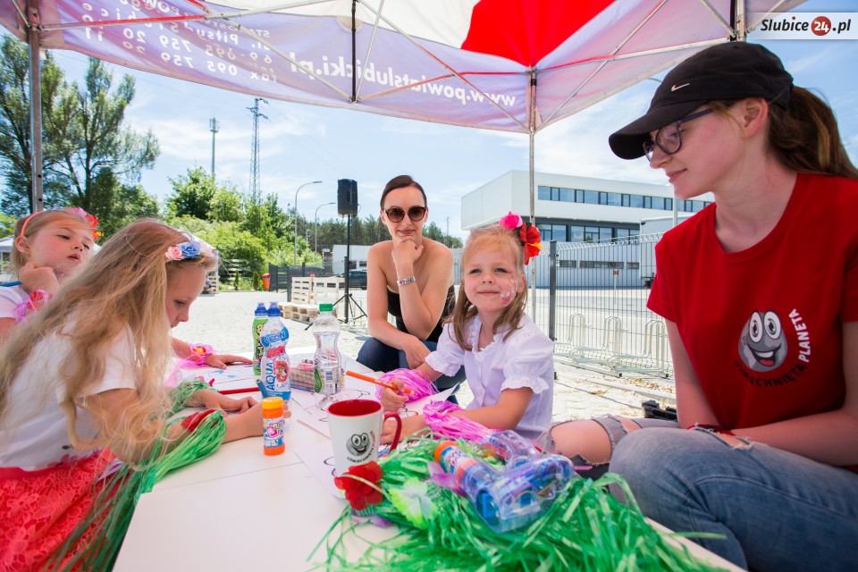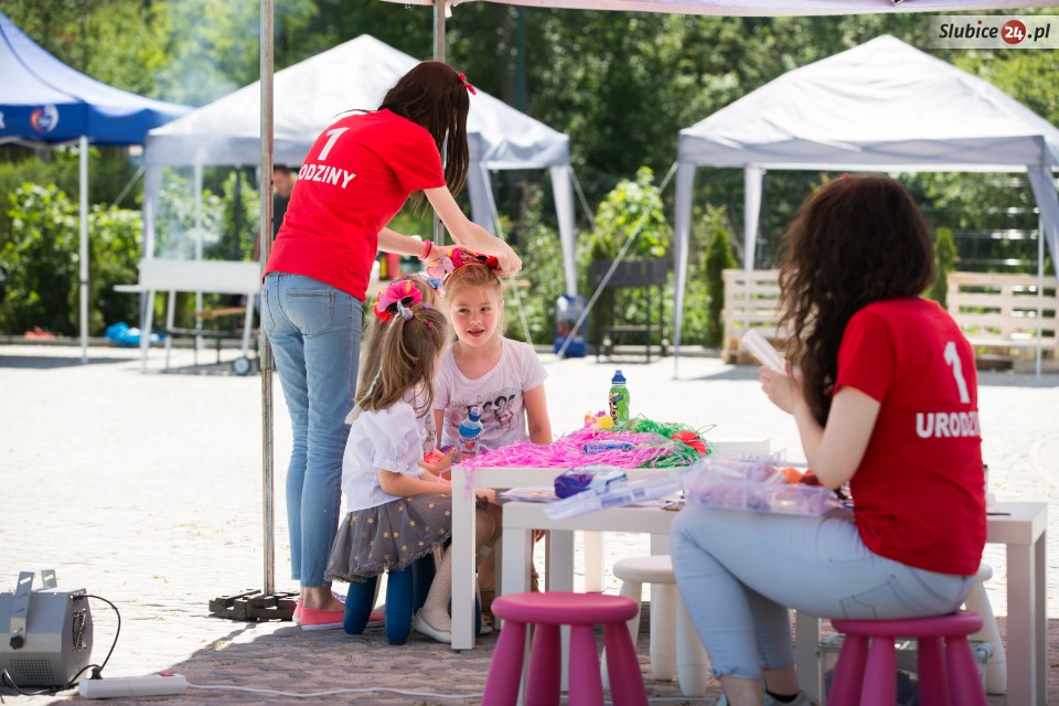 To jednak nie wszystko. Było malowanie twarzy, wspólne rysowanie, quizy wiedzy, zwierzaki z balonów. Miłym akcentem był wjazd urodzinowego tortu, którym właścicielka Uśmiechniętej Planety poczęstowała wszystkich gości i pracowników. Na strudzonych zabawą i ich opiekunów czekała dobrze zapatrzona gastronomia - ciasto, napoje, potrawy z grilla, nieśmiertelny popcorn i wata cukrowa. Komu doskwierał upał mógł schronić się w przyjaznych murach sali zabaw.