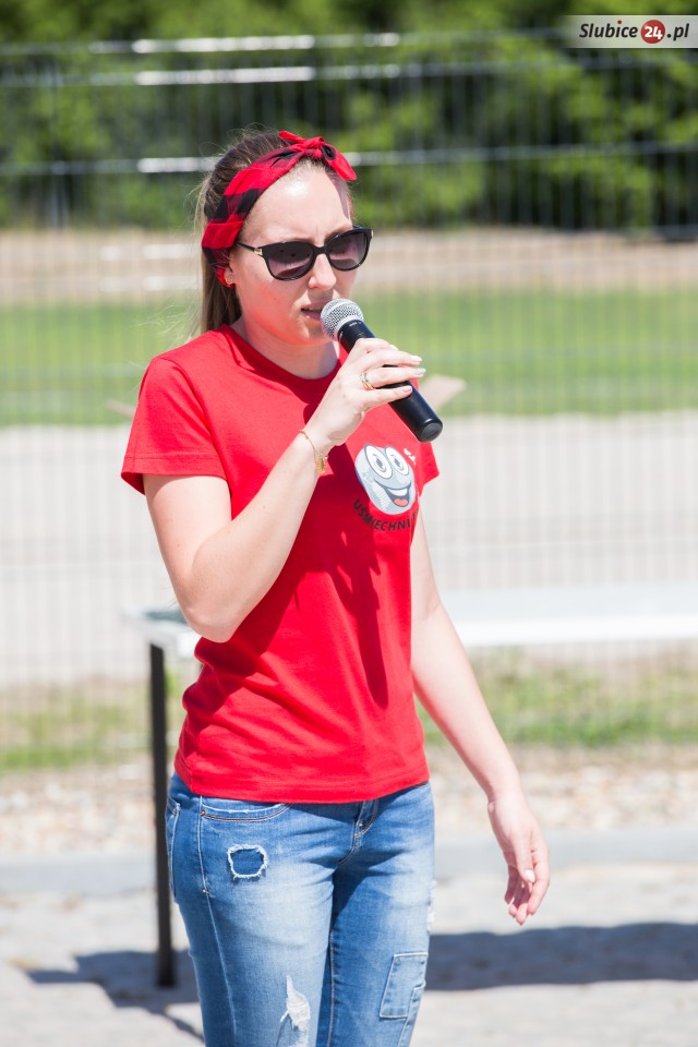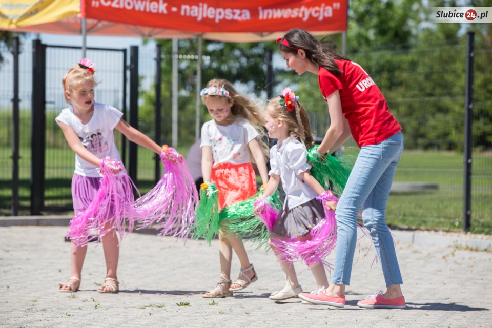 Impreza rozpoczęła się równo w południe. Z racji pięknej, słonecznej pogody większość atrakcji przygotowano na placu przed salą zabaw. Tu gości przywitała właścicielka Agata Ilcewicz-Kryger. Miło zaskoczyła też licznie zgromadzonych pracowników i przyjaciół Uśmiechniętej Planety, którym postanowiła osobiście podziękować za miniony rok wręczając firmowe kubki.