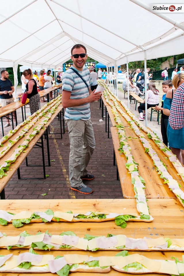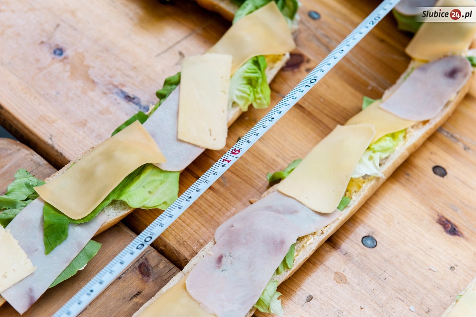 Wyzwanie było nie lada, bo dotychczasowy rekord wynosił aż 120 metrów. Do zrobienia mega kanapki przygotowano imponującą liczbę składników - 35 kg szynki, 35 kg sera, 30 kg masła, 20 główek sałaty oraz 80 kg bagietki. Układanie całości trwało kilka godzin. W międzyczasie każdy, kto zgłosił się do bicia rekordu, otrzymywał pamiątkowy dyplom. Dzięki sprawnej współpracy wszystko poszło jak należy.