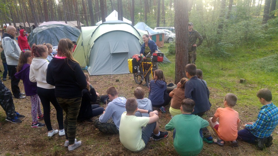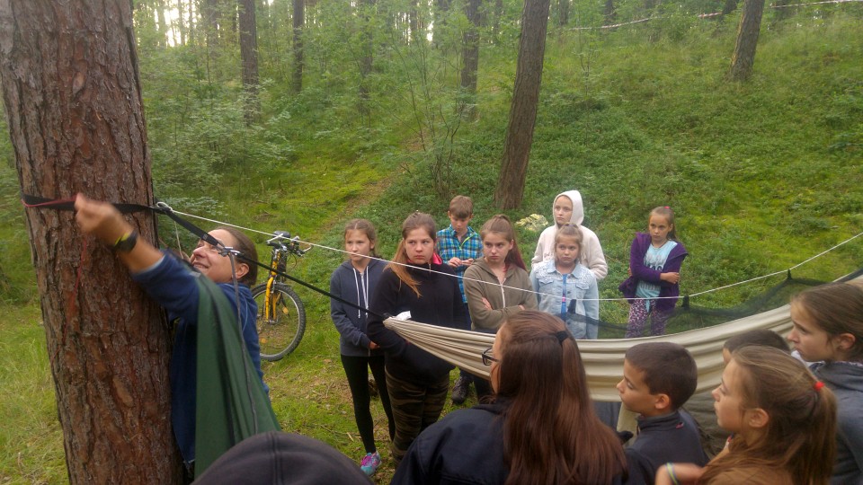 Dorota Rutka, nauczycielka ze słubickiego ogólniaka, opowiadała o różnicach podróżowania w Polsce i Europie. Od bardziej cywilizowanych terenów jak wysepka Bornholm, po dzikiej i mniej zaludnione tereny Skandynawii. Cześć drogi do Mrzeżyna pokonała na rowerze. – Pokazywałam, jak zapakować swoje rzeczy na rower, niektórzy sami próbowali złożyć mój malutki jednoosobowy namiot czy rozwiesić hamak i rozłożyć nad nim daszek. Upiekliśmy też chleb na patelni – mówi D. Rutka. Obozowicze ochoczo sprawdzali, czy w hamaku wygodnie się leży.